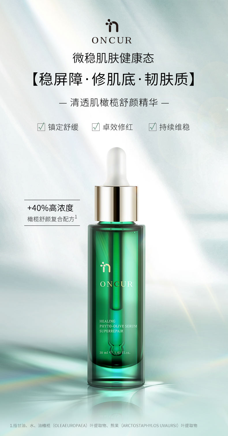 ONCUR安修澤油橄欖精華液補水保濕淡化痘印淡斑維穩修紅提亮膚色