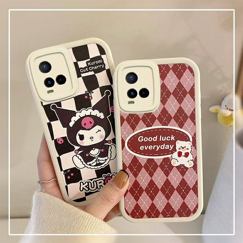 適用vivo y32手機殼網紅菱格viviy32個性全包邊voviy32可愛少女款voivy卡通防摔viovy32保護殼vlvoy32軟硅膠