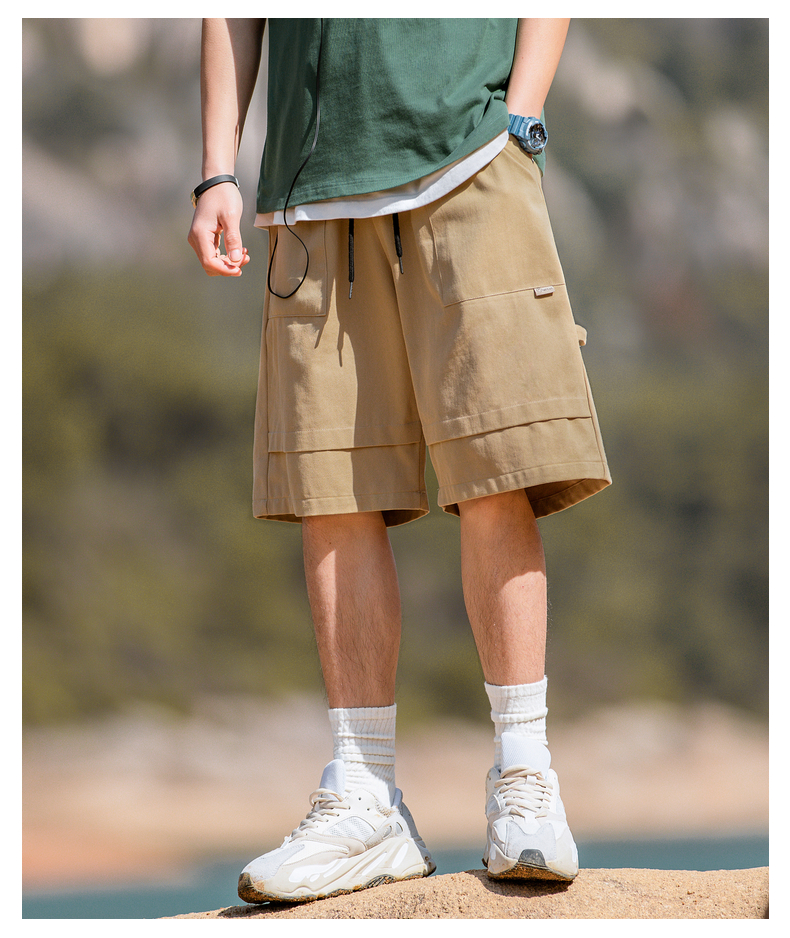 男士日系卡其色工裝短褲男夏季薄款冰絲五分褲寬松速干褲男款中褲