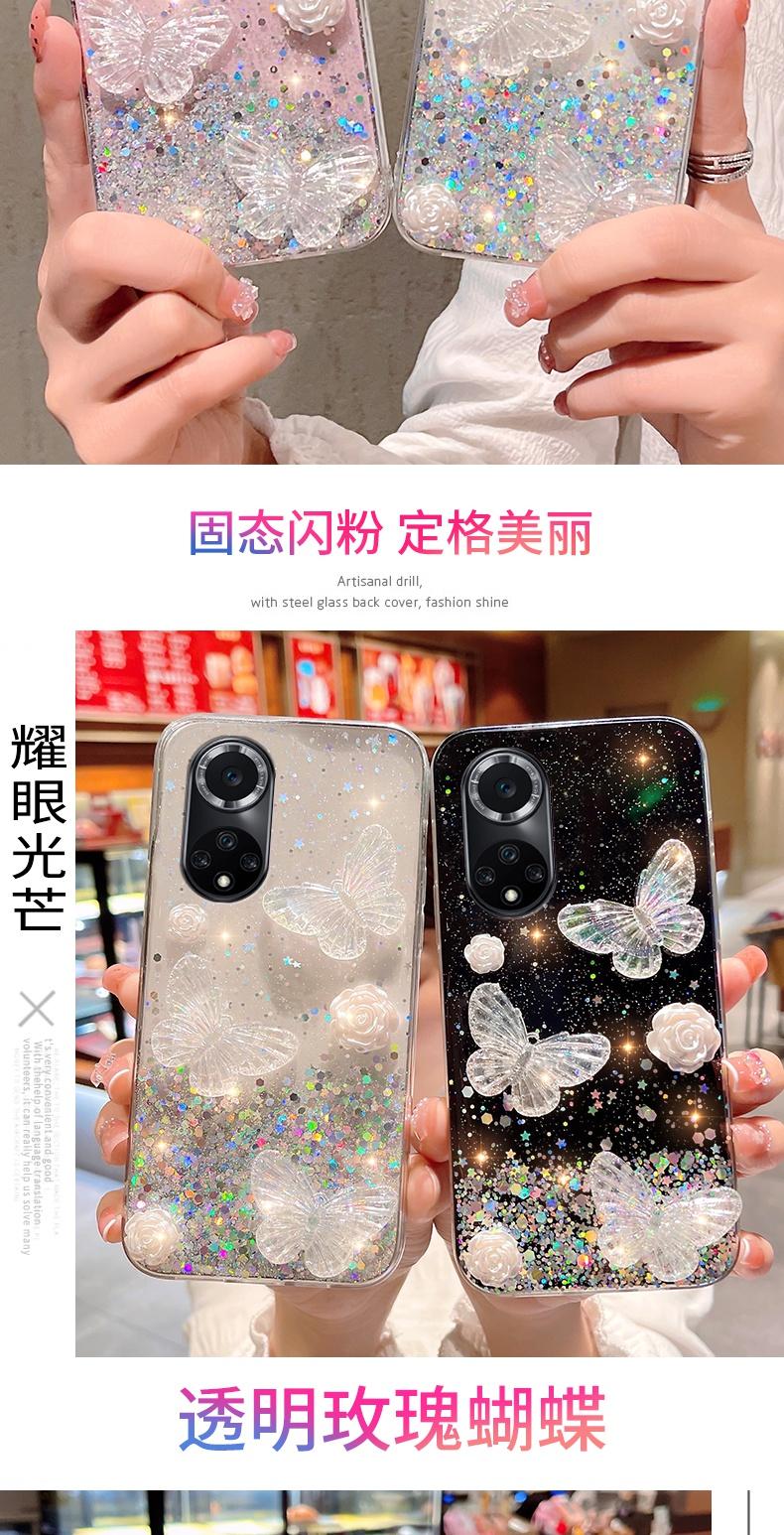 奢華水晶閃粉透明滴膠蝴蝶適用華為nova9手機殼novo9Pro新款hi手機套nove8se硅膠防摔nova7不頂膜no9新品5g版