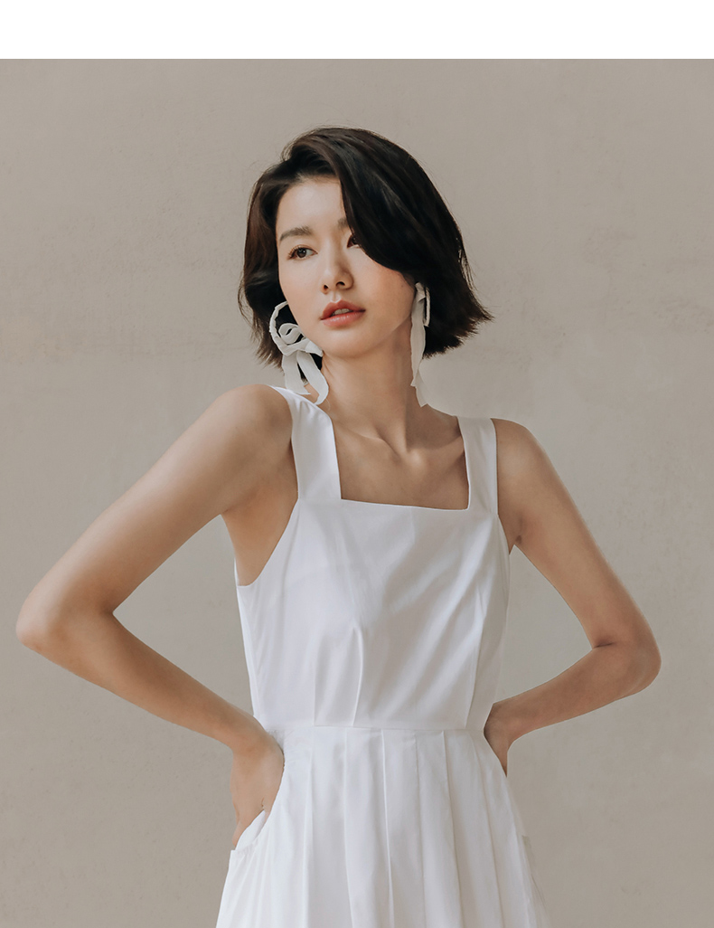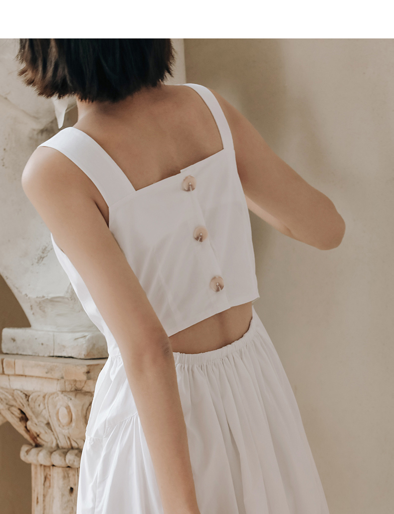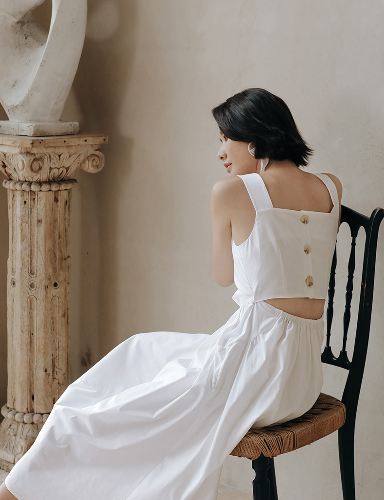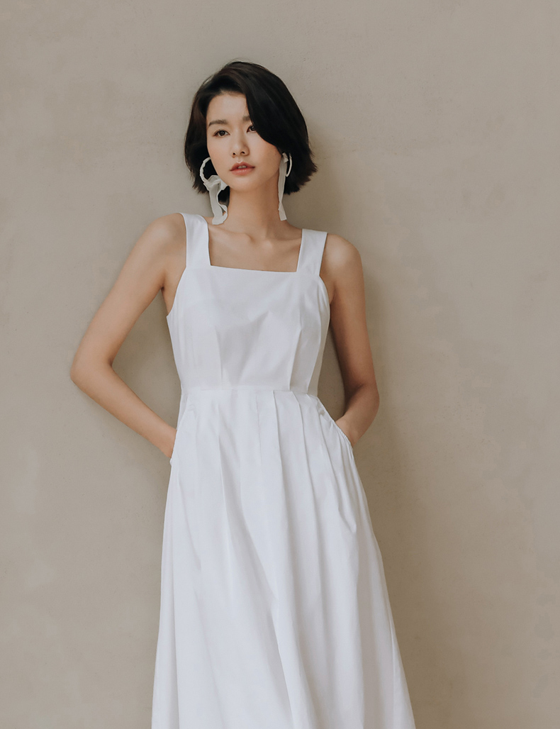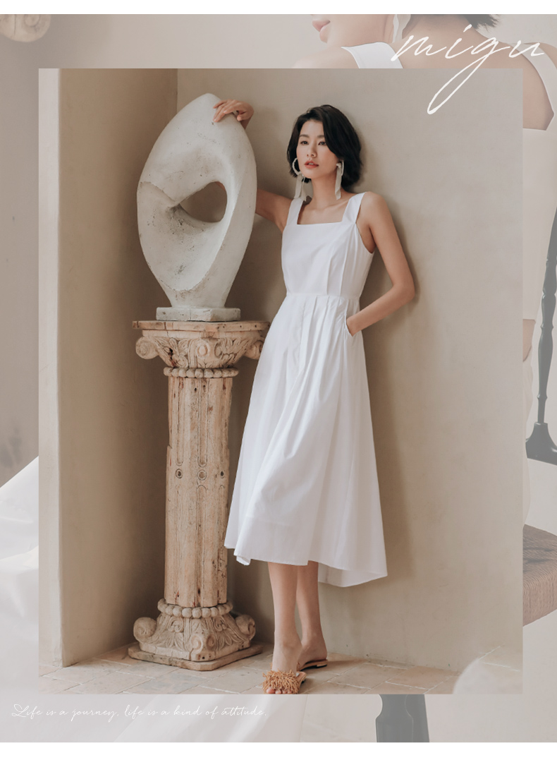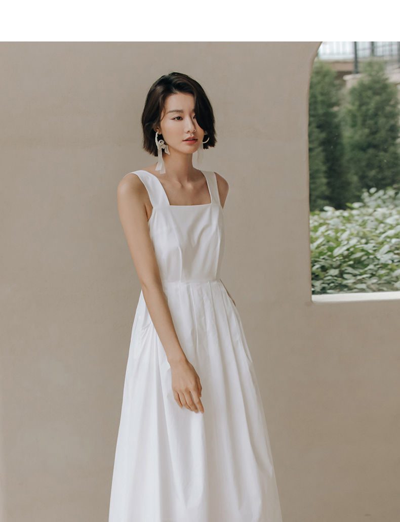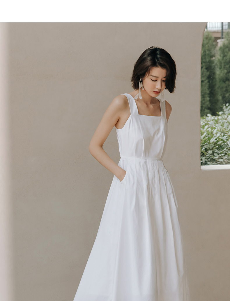 彌古法式小白裙高級感寬肩帶白色背心連衣裙女夏季純棉吊帶裙長裙