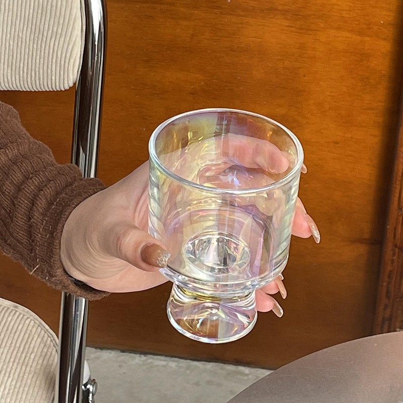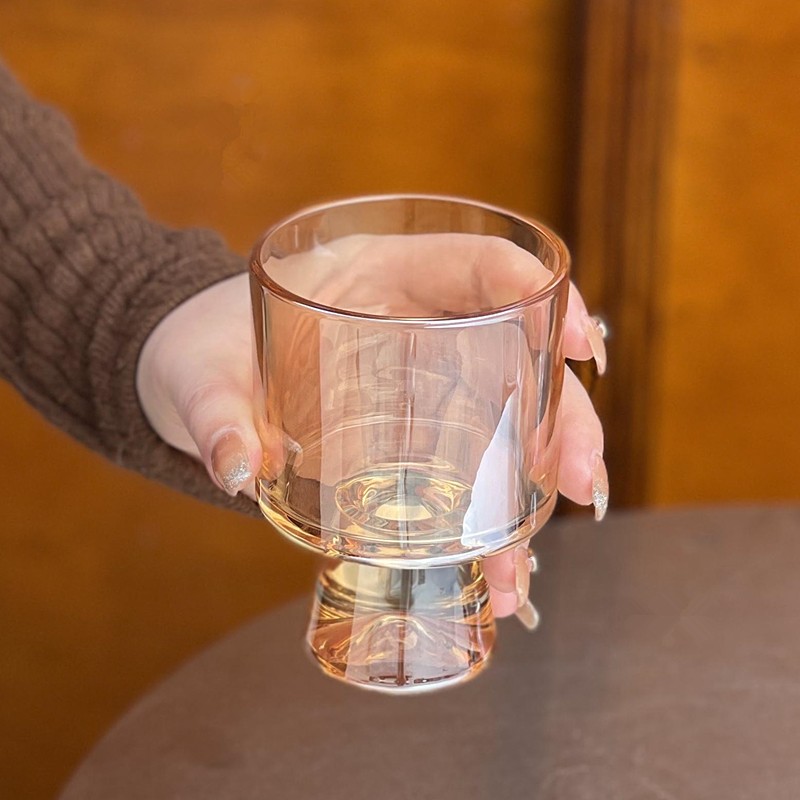 2022網紅ins簡約餐廳玻璃杯冷飲杯咖啡杯高腳氣泡杯果汁杯甜品杯
