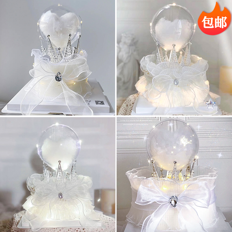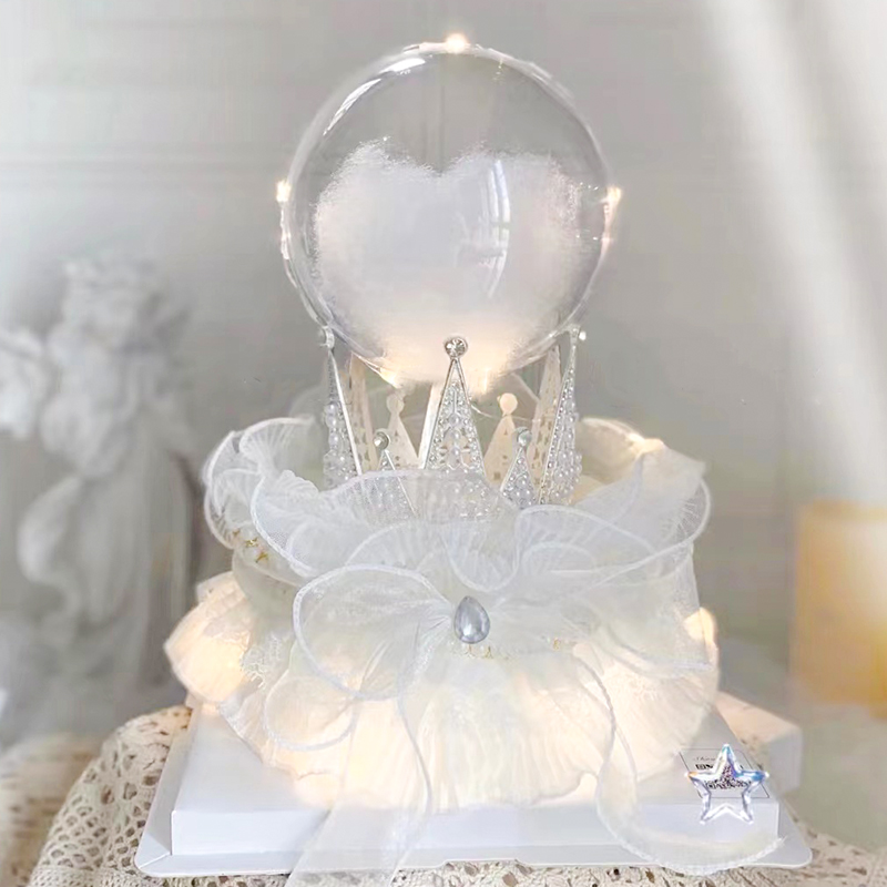 七夕情人節水晶球透明球棉花球生日蛋糕裝飾皇冠三角珍珠烘焙擺件