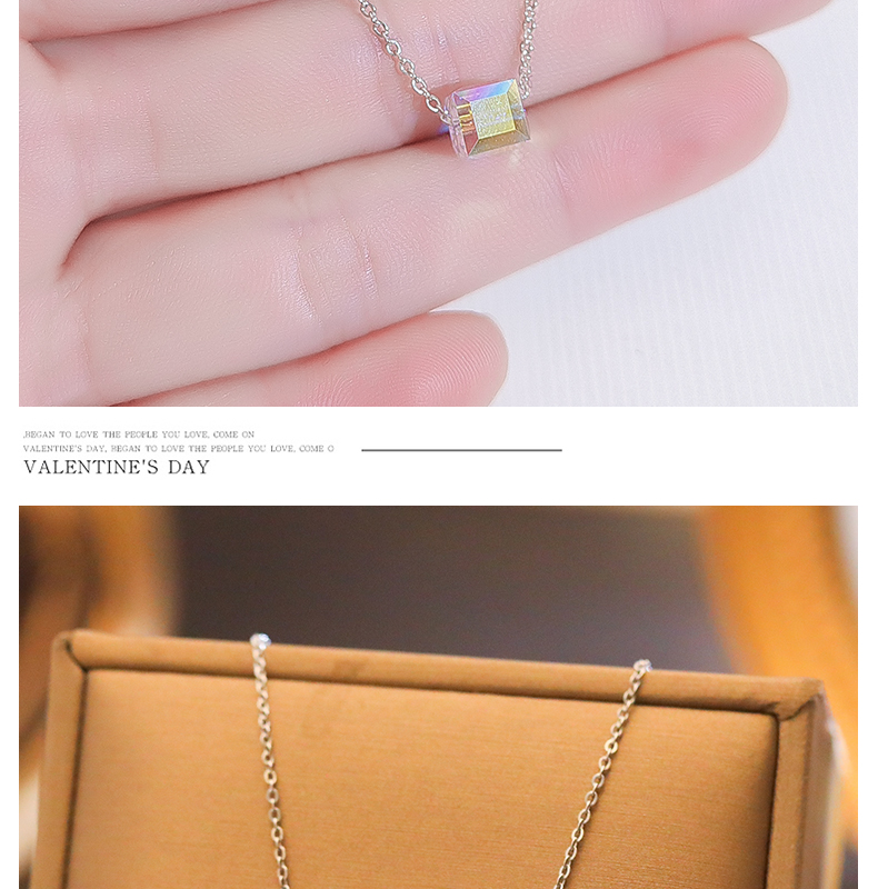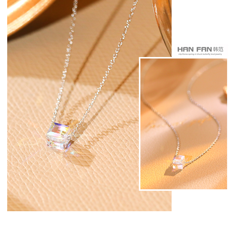 幻彩水晶吊墜ins小方糖項鏈女輕奢小眾鎖骨鏈2022年新款鈦鋼頸鏈