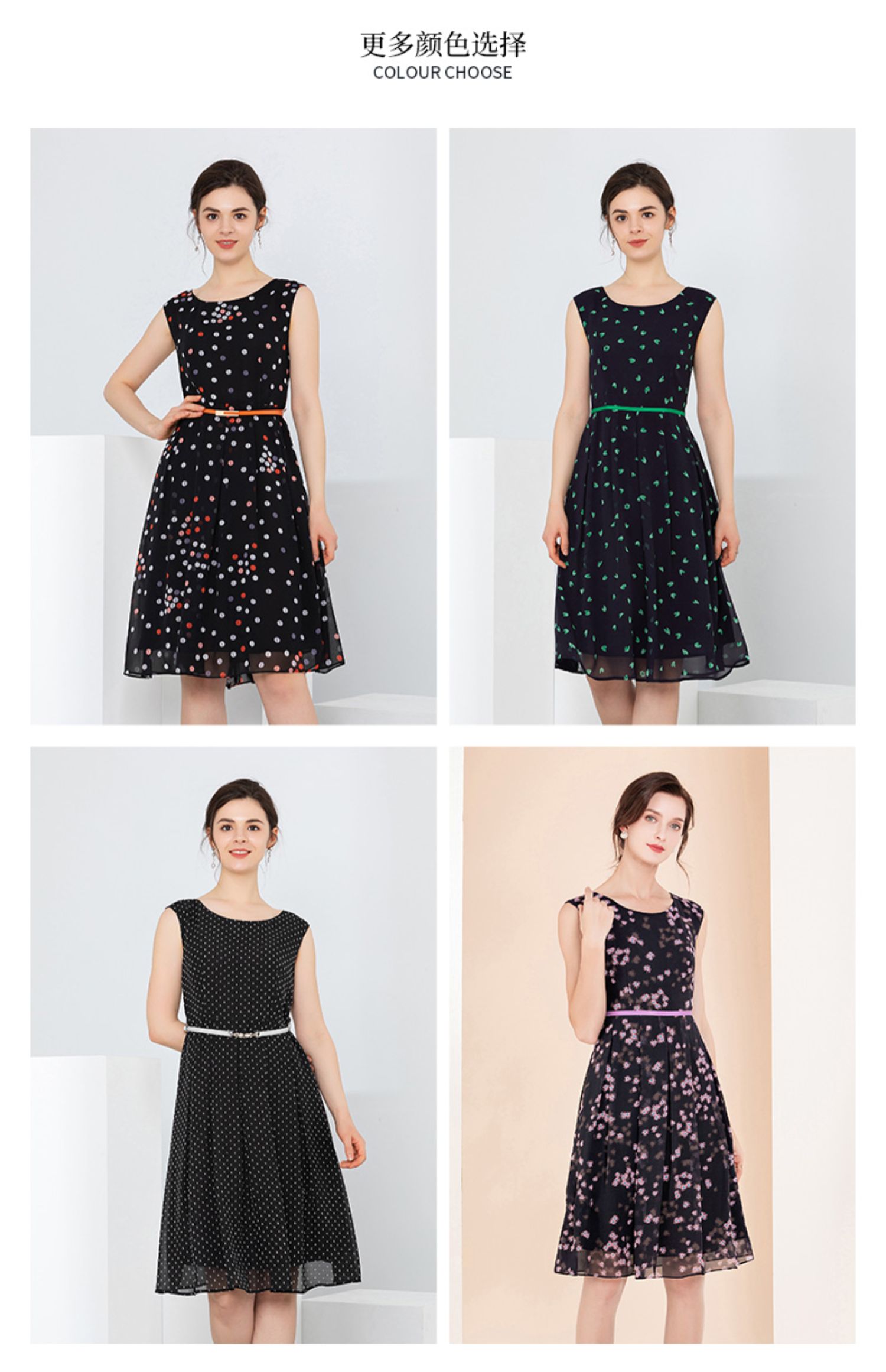 名師路雪紡連衣裙女夏2023年a字裙薄無袖圓領碎花修身中長款紫色