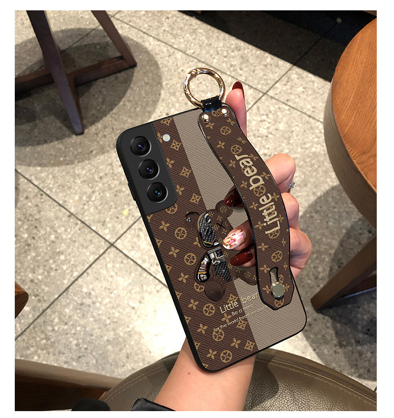適用三星s22ultra手機殼S23plus外殼S21FE貼皮S23保護套腕帶款機械熊S22+斜挎掛繩潮牌網紅同款支架大牌高檔