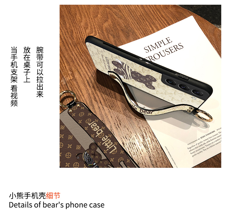 適用三星S23Ultra手機殼S22保護套S21+外殼s23plus皮質手感S21FE腕帶款S23毛衣熊S22+斜挎掛繩男女款網紅潮牌