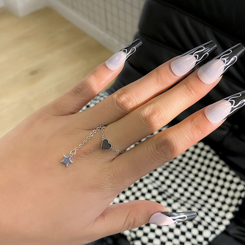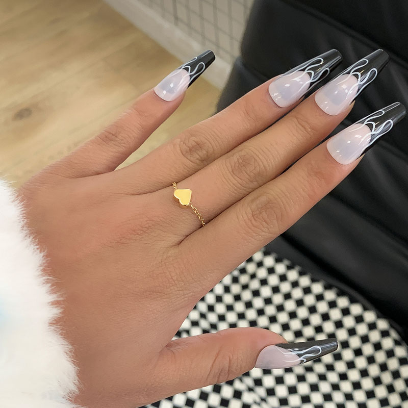 穿孔愛心鏈條流蘇戒指女 歐美夏季小眾設計個性可調節指環配飾品