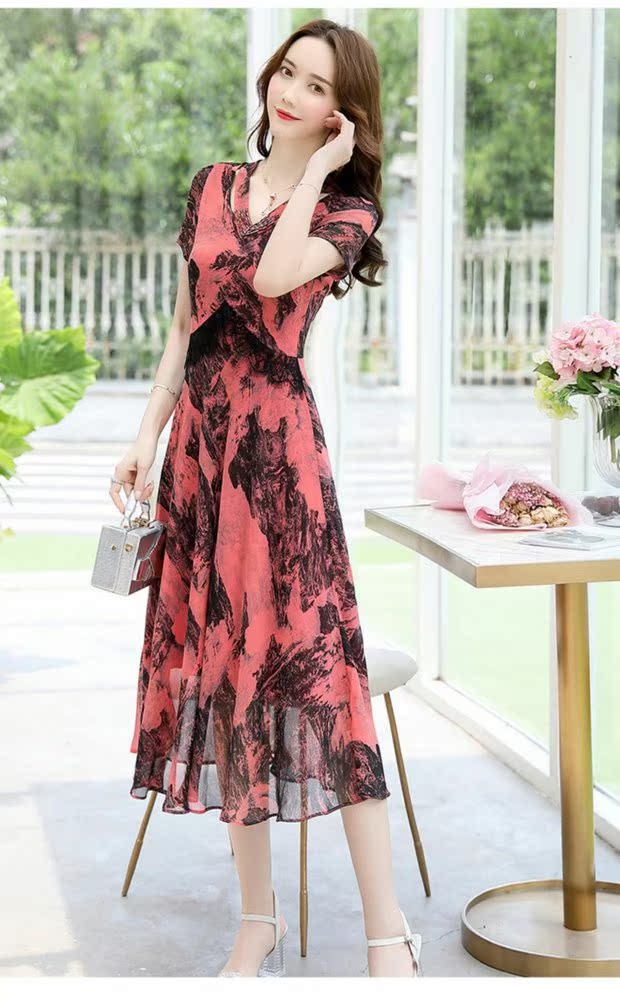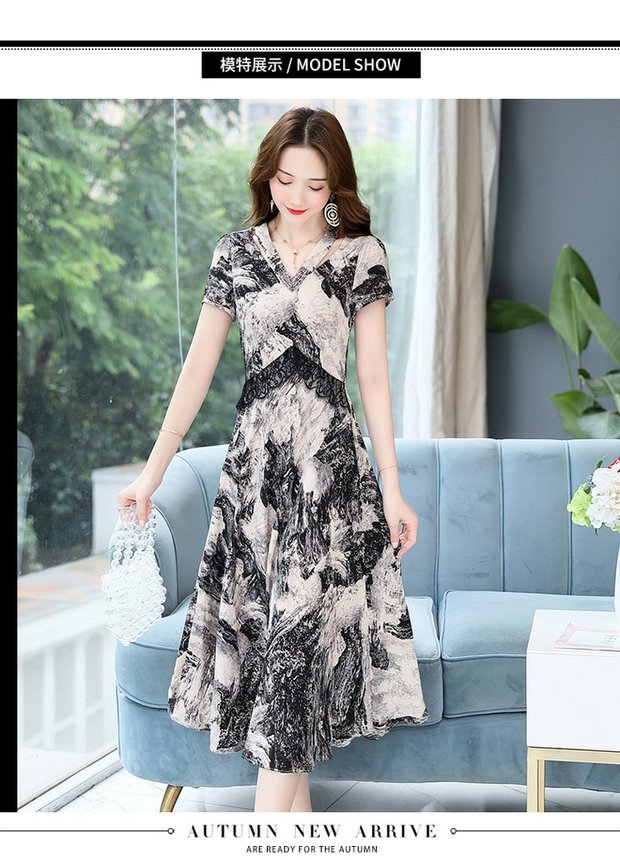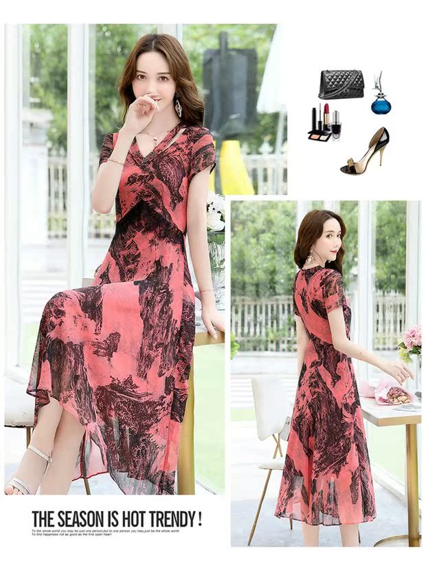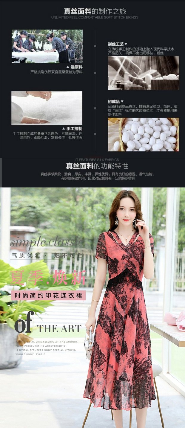 杭州真絲連衣裙夏季2022年新款女高端氣質中長款V領桑蠶絲花裙子
