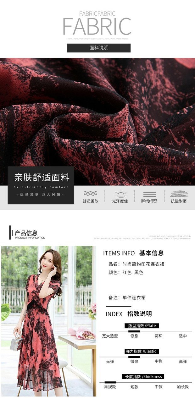 高端真絲夏裝連衣裙氣質新款V領減齡女夏季收腰桑蠶絲碎花長裙子