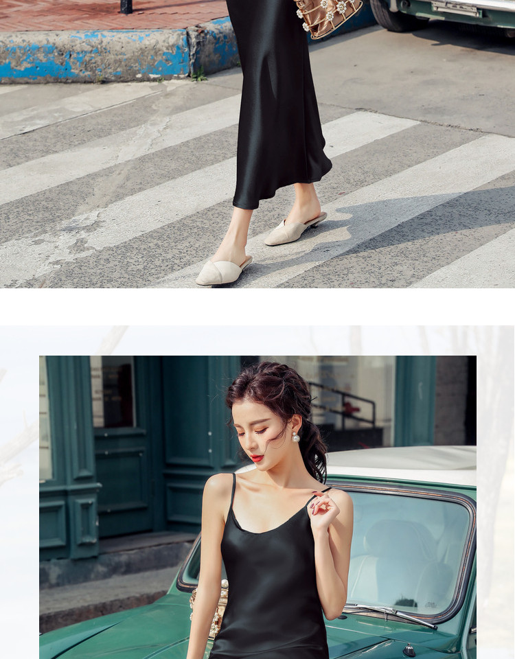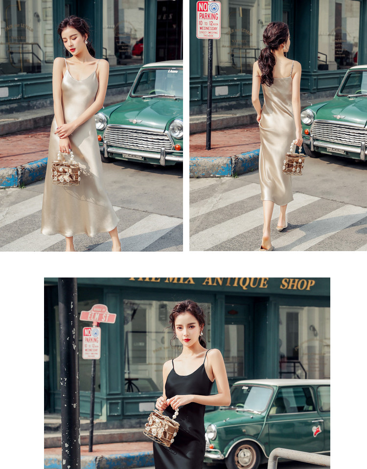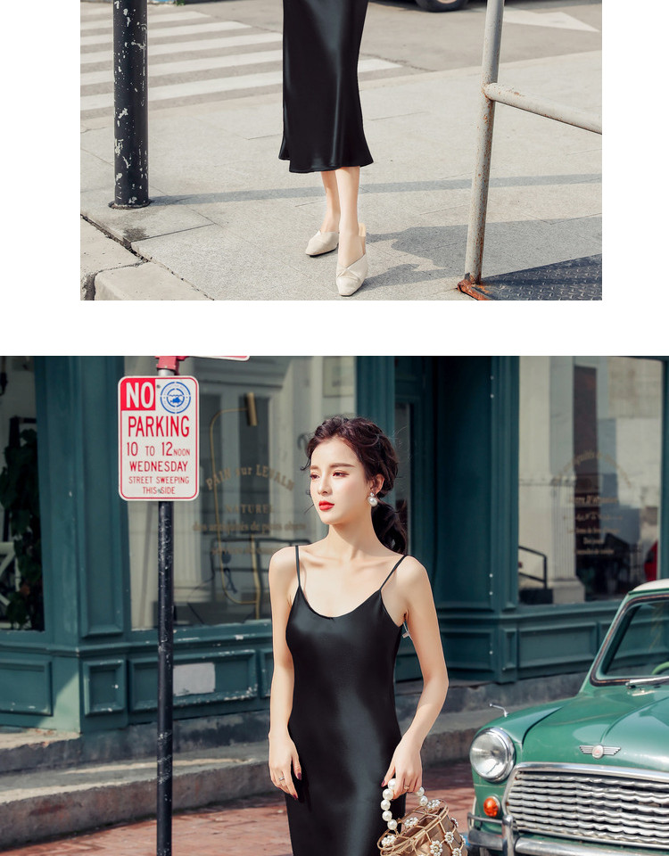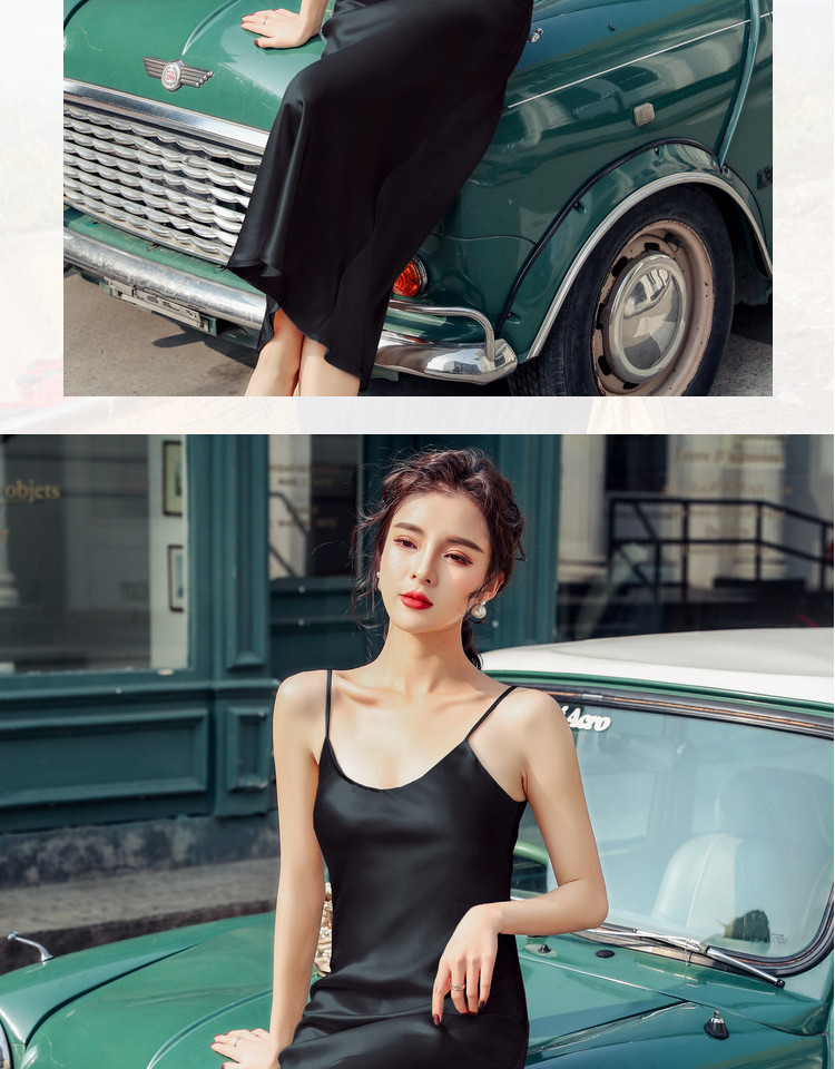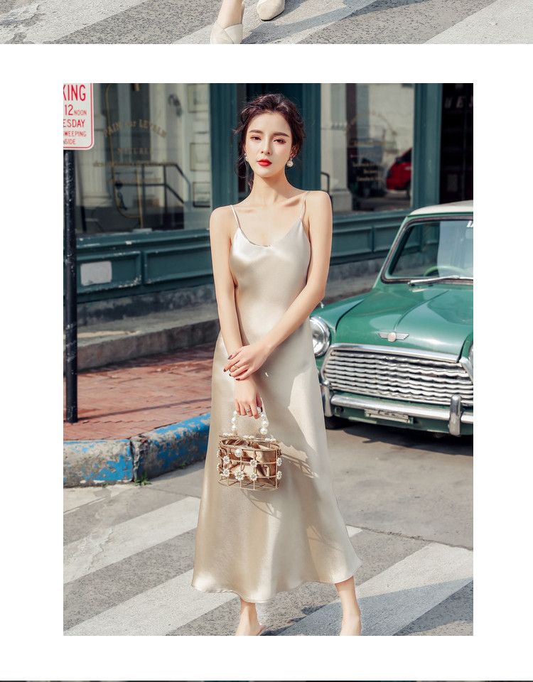 真絲緞面吊帶春夏內搭西裝連衣裙
