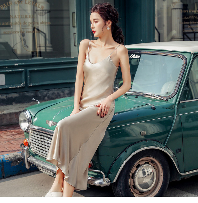 桑蠶絲吊帶女夏內搭打底醋酸連衣裙