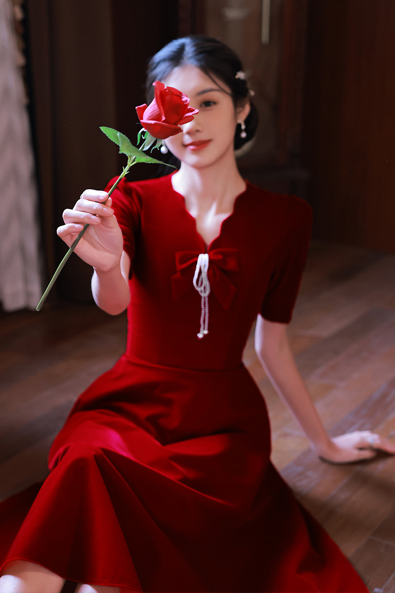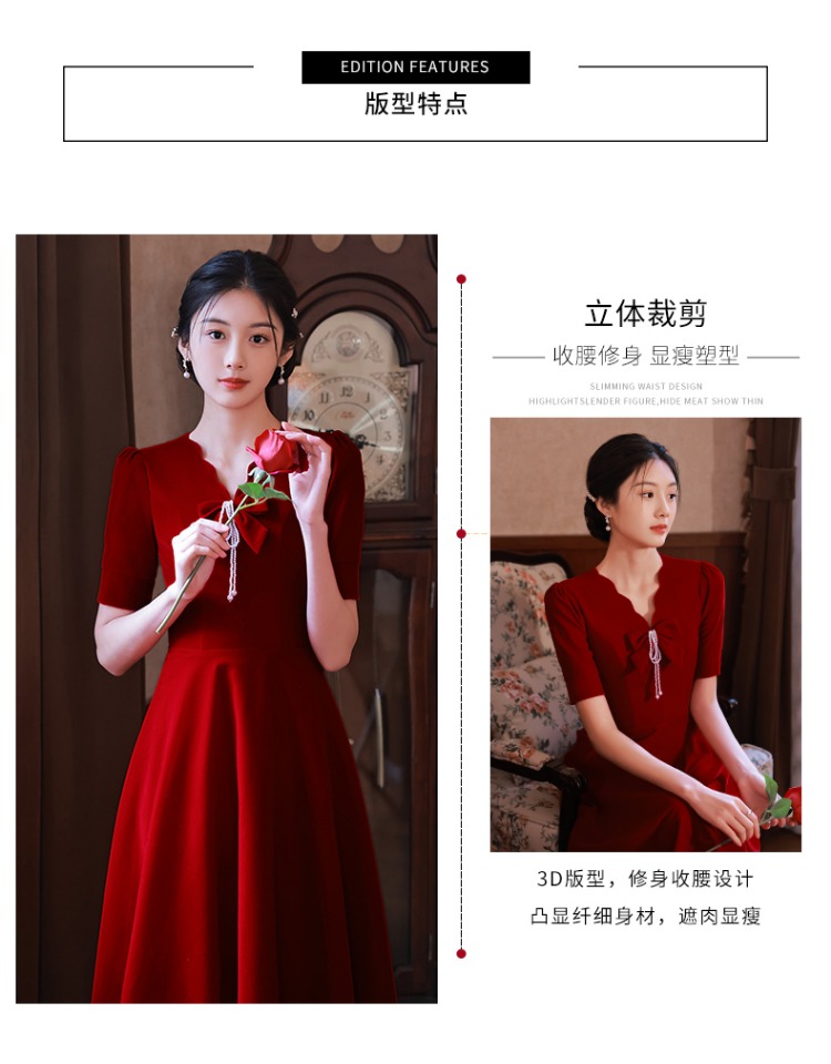 訂婚禮服紅色連衣裙敬酒服小個子新娘高級感2023新款夏季簡單大方