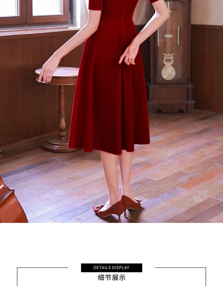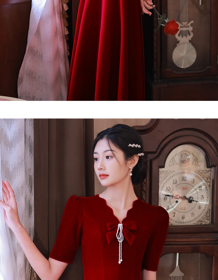 新娘夏季酒紅色結婚連衣裙敬酒服