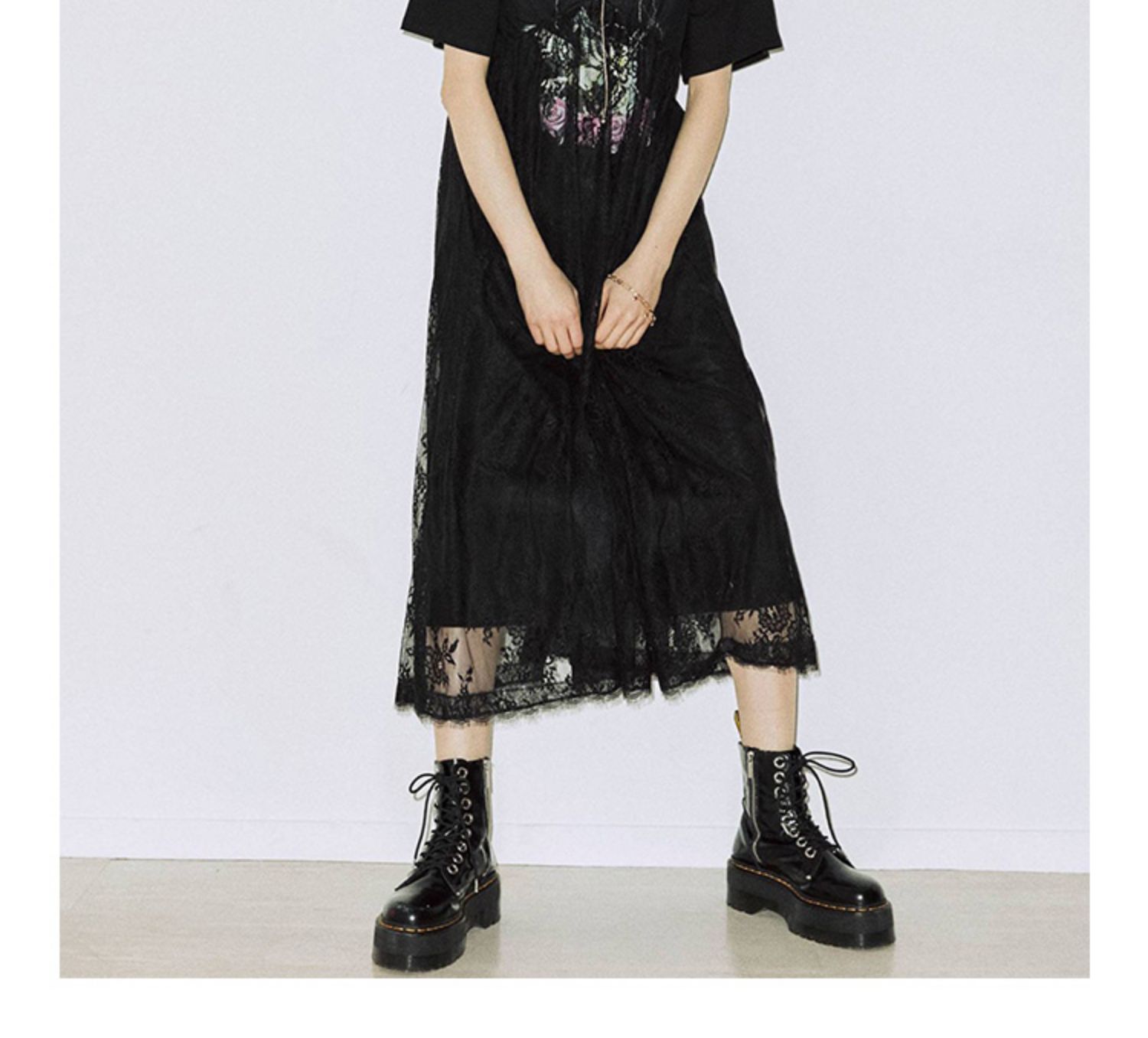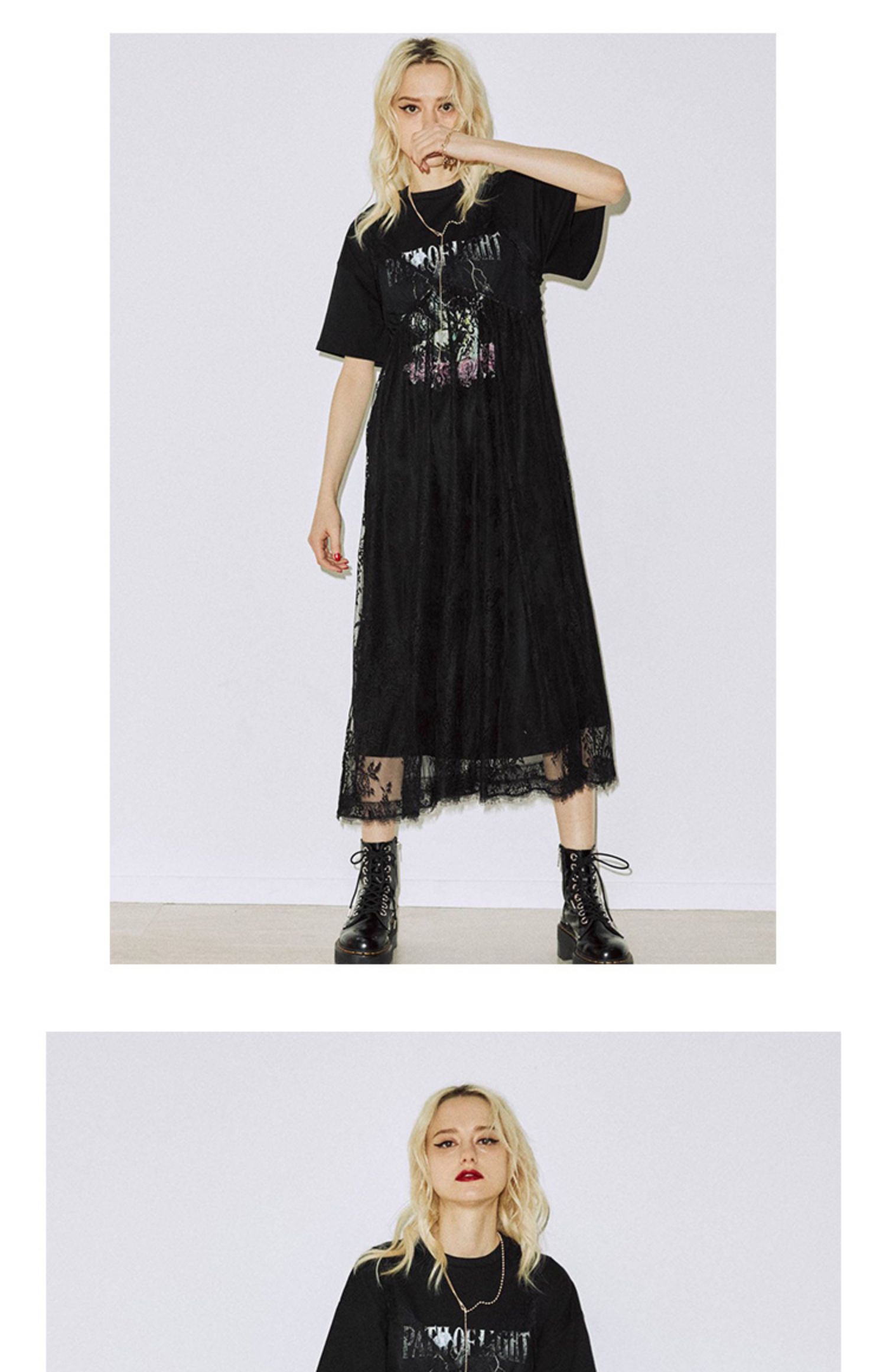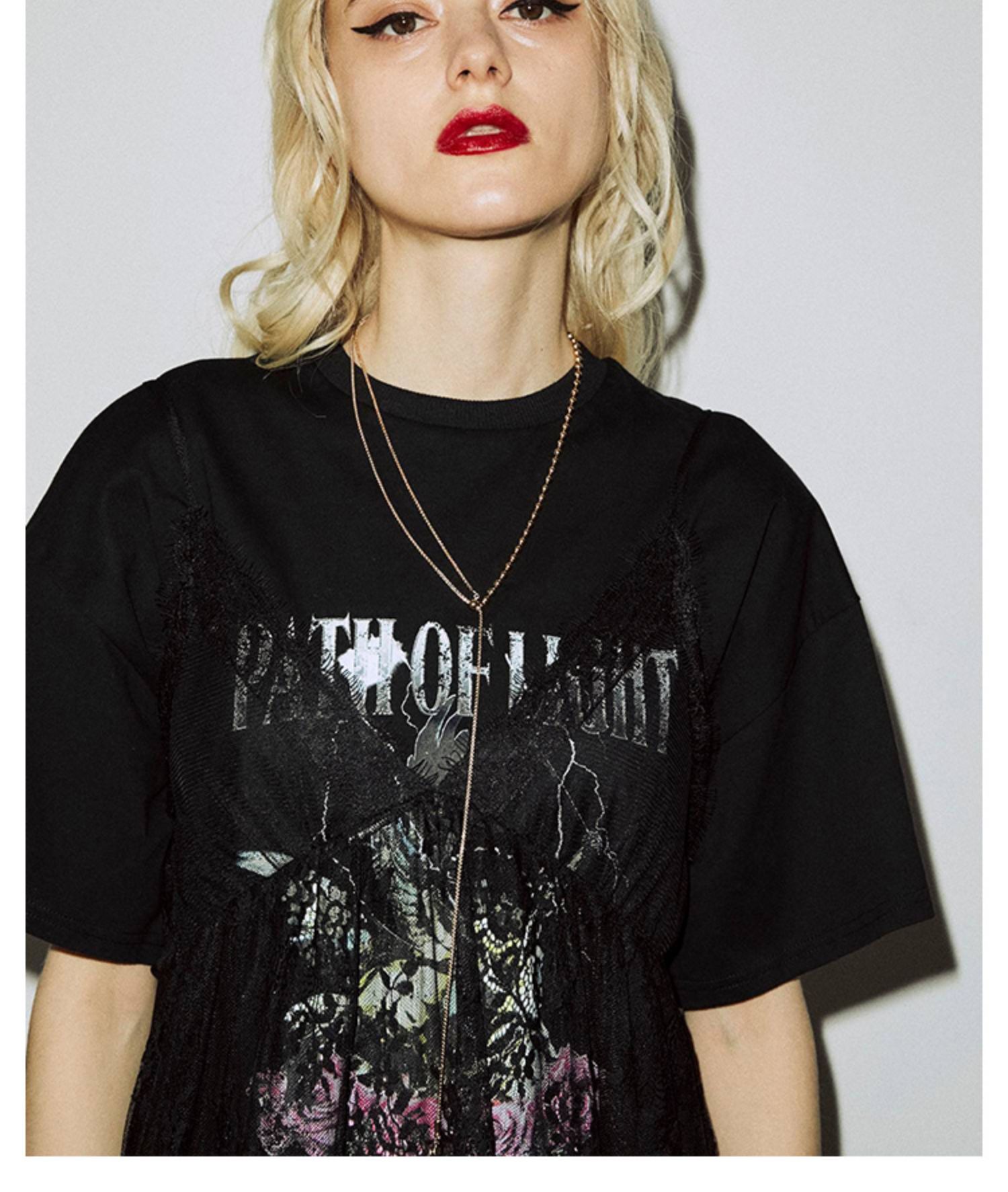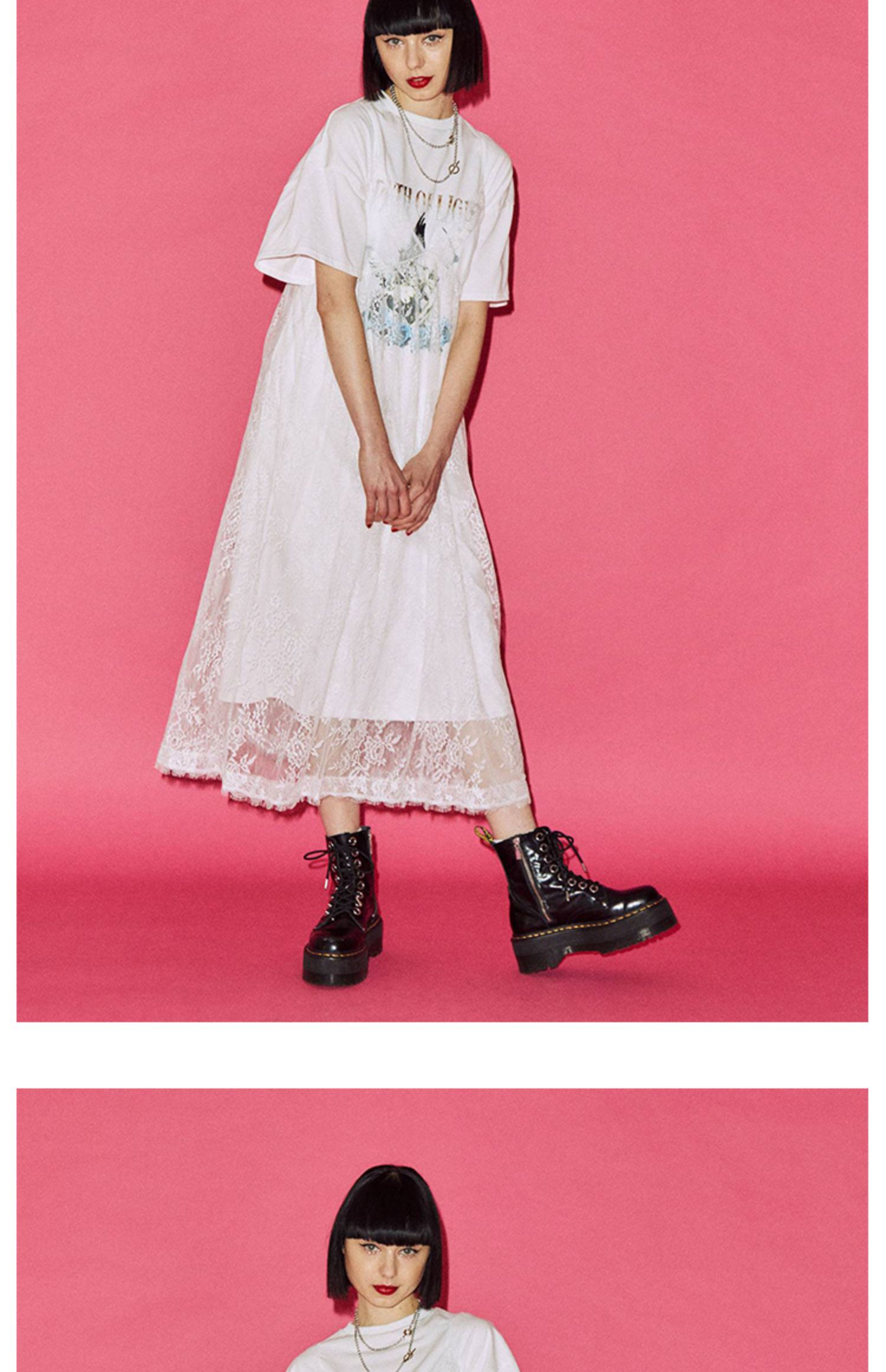 jouetie日系潮牌春夏新款短袖長款T恤蕾絲吊帶連衣裙兩件套