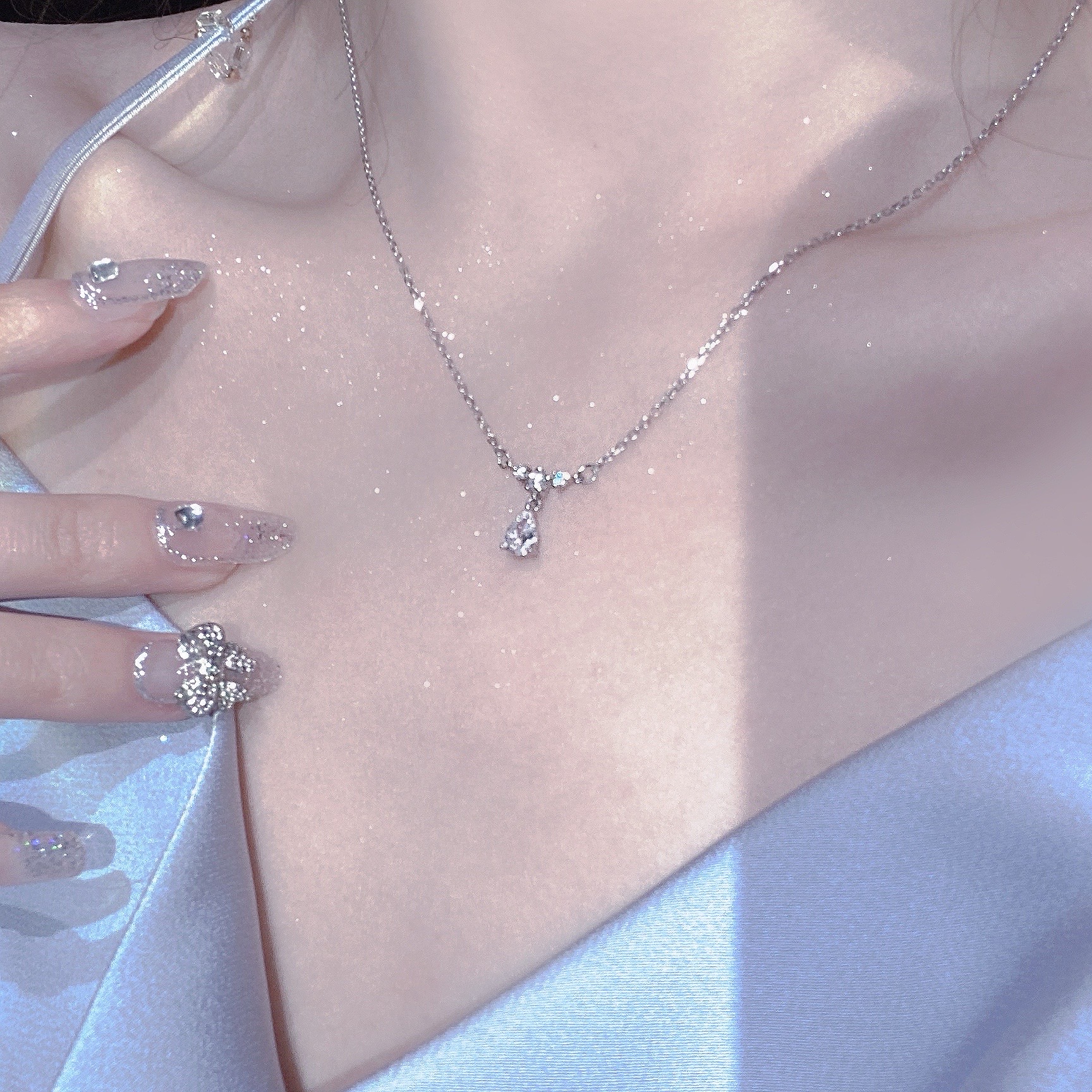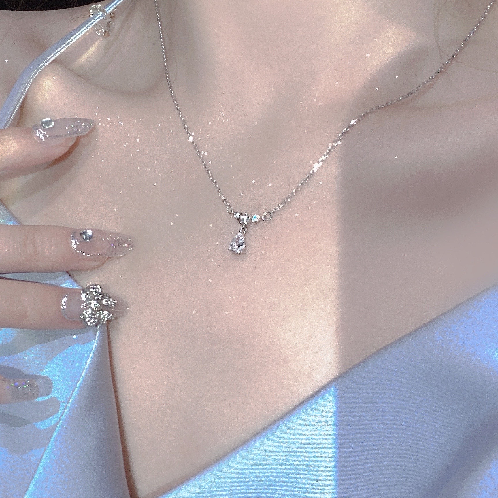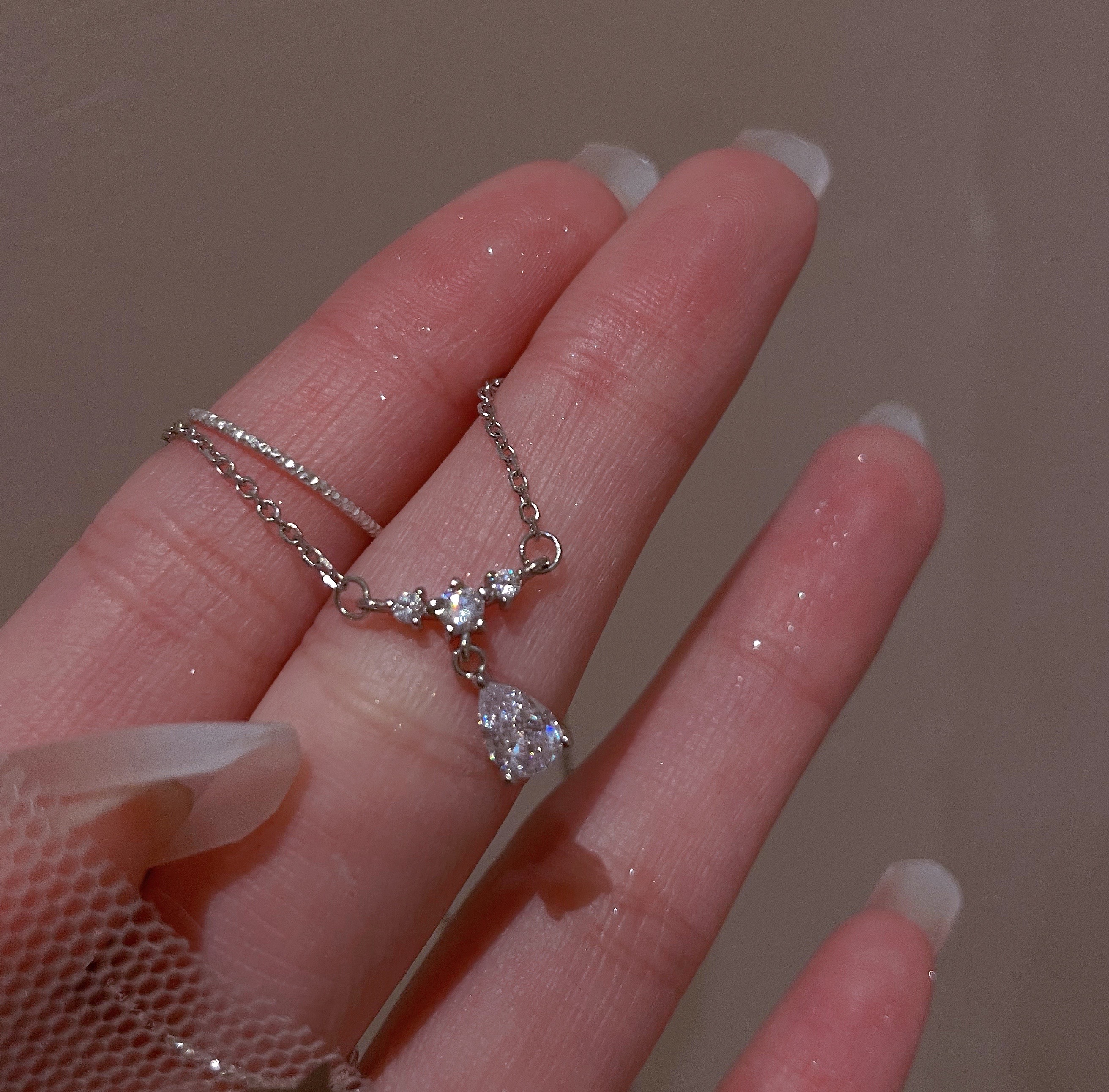 「雨滴」精靈眼淚925純銀項鏈女生鎖骨鏈輕奢小眾不掉色頸鏈配飾
