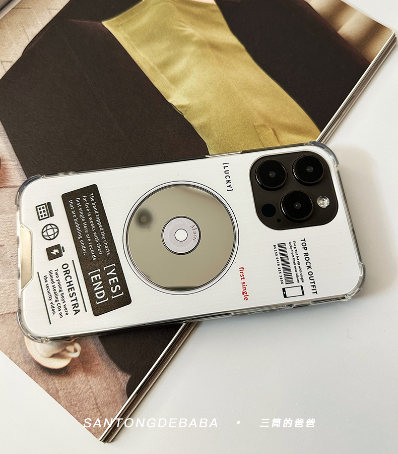 三筒的爸爸iphone14pro手機殼鏡面13pro創意小眾男女11/12/13promax光盤適用蘋果12硬殼華為p40/p50/mate30