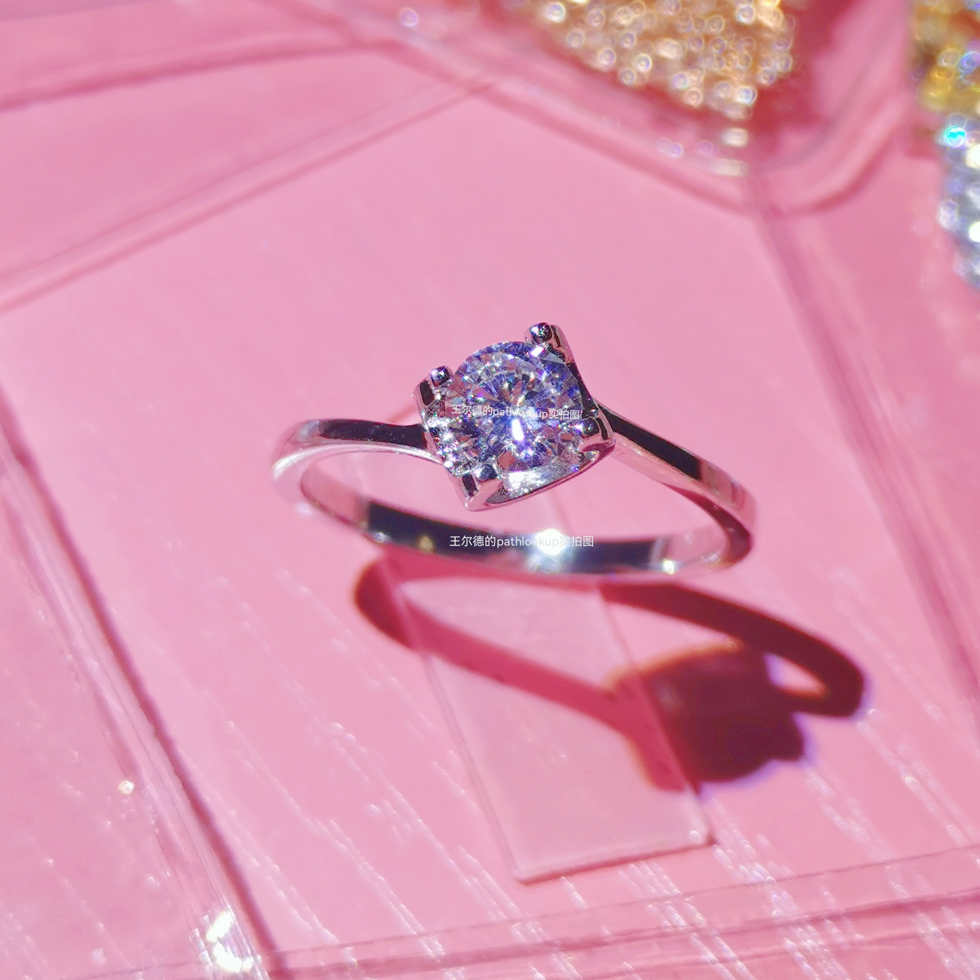 18K金45分高碳鉆石戒指女 極簡冷淡扭臂牛頭婚戒婚禮仿真道具鉆戒