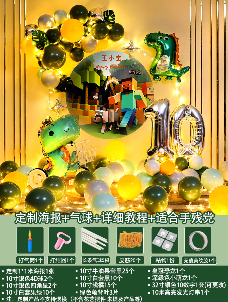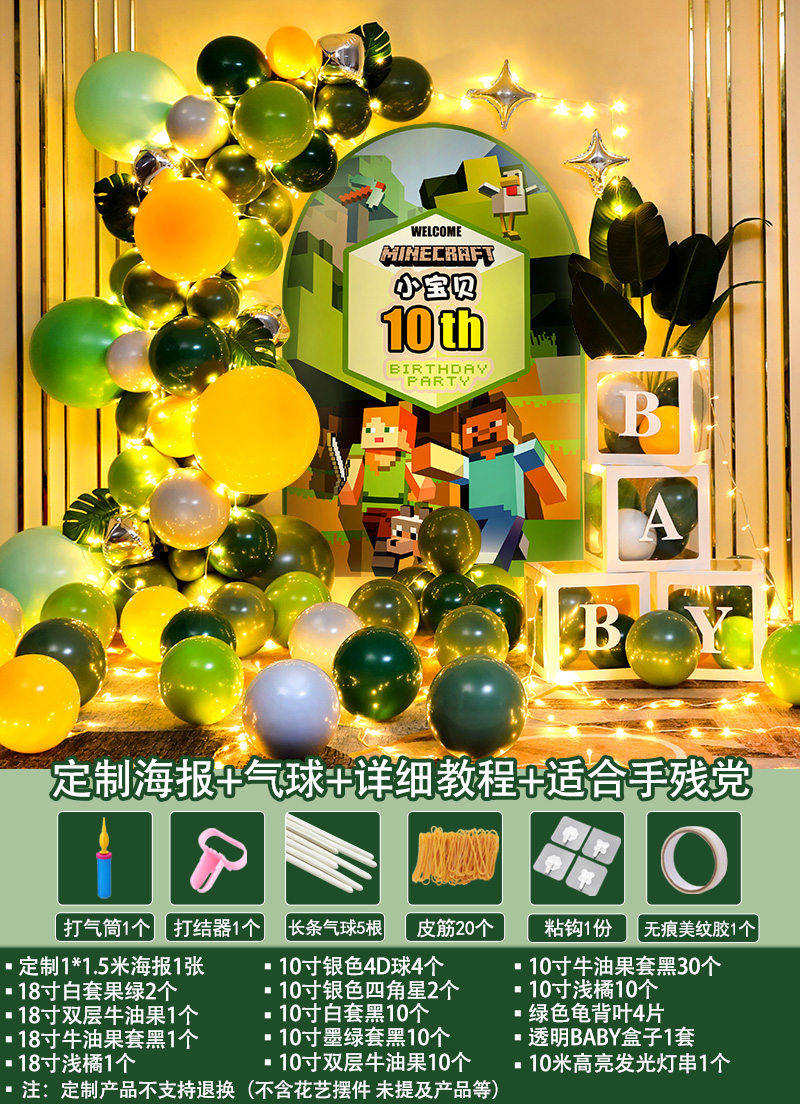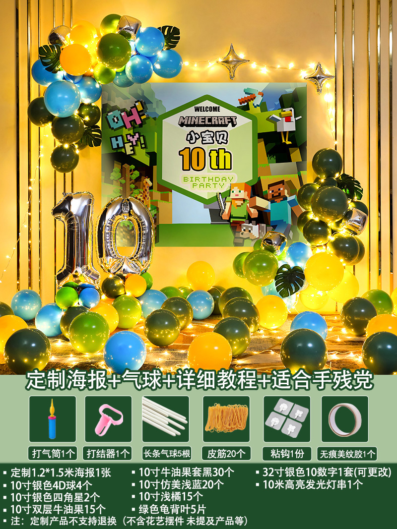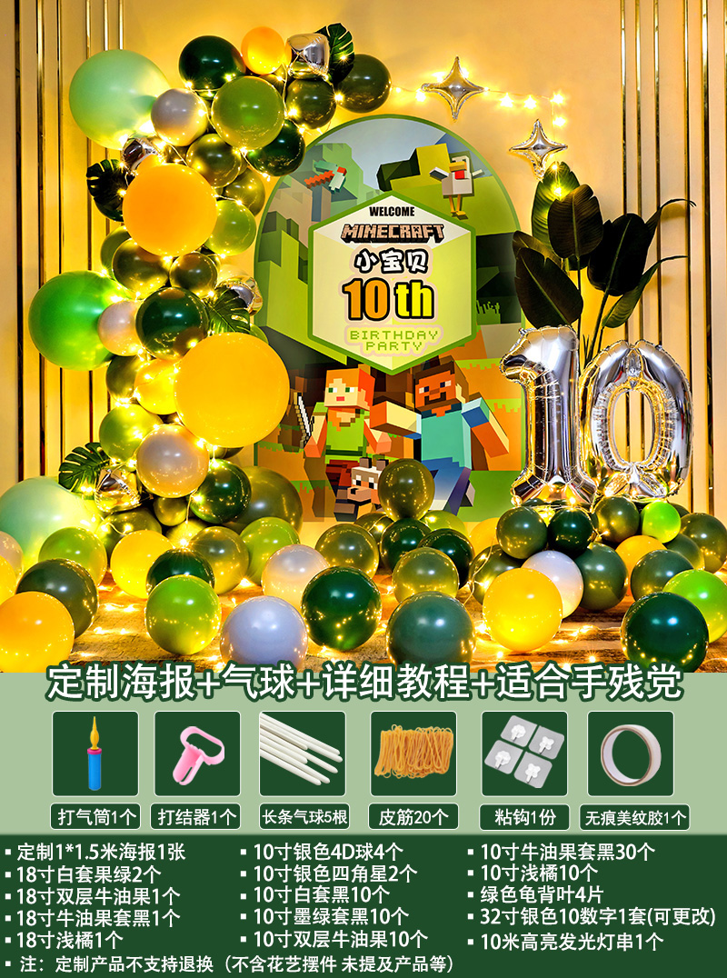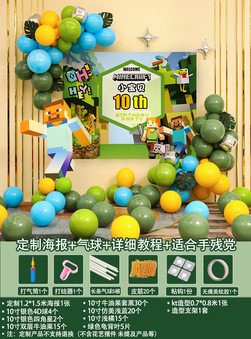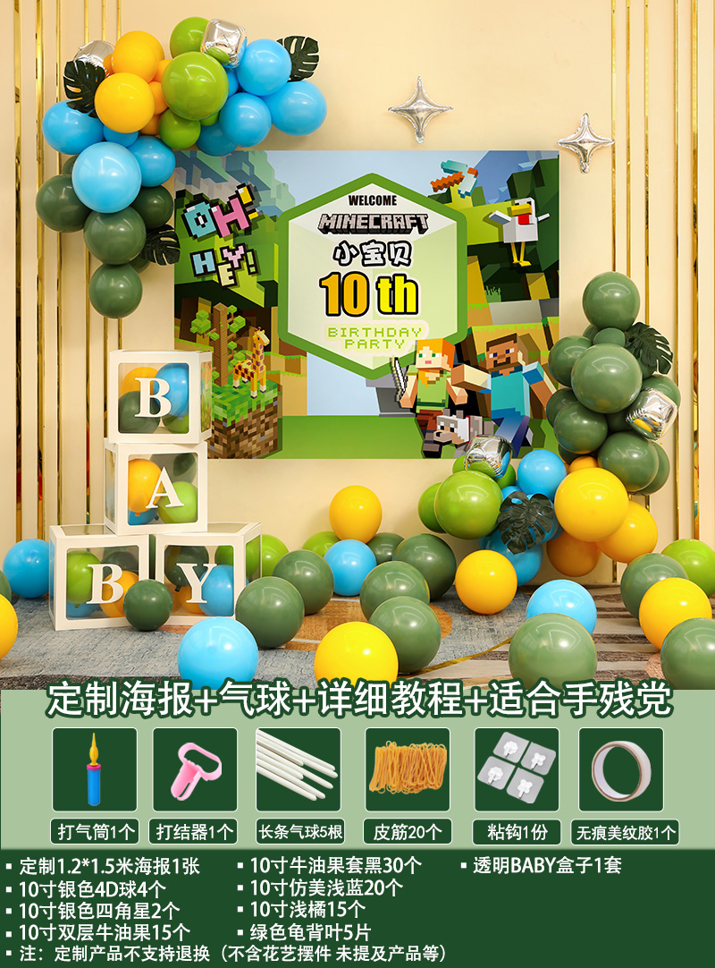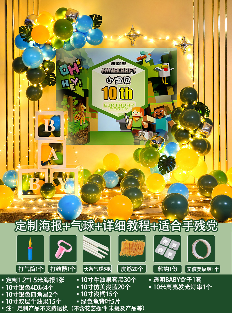 我的世界迷你卡通生日裝飾男孩場景布置兒童10十歲氣球派對背景墻