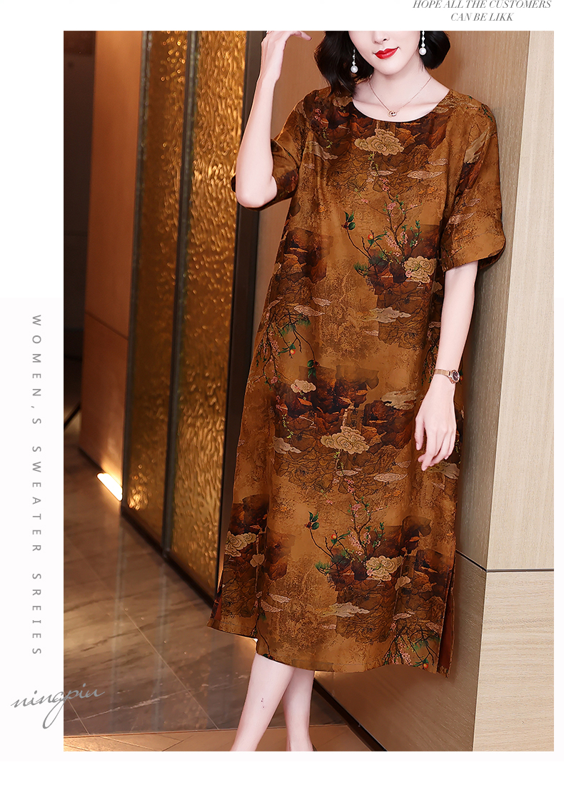 中年重磅真絲連衣裙夏桑蠶絲裙子