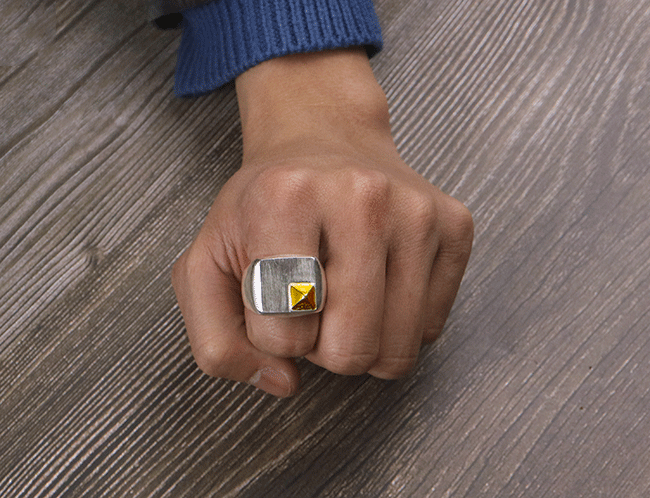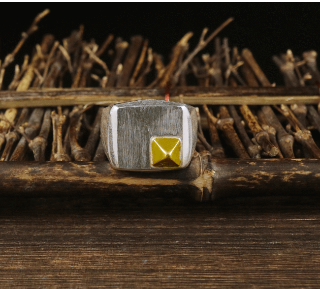 伊瓦嵐高山隆stop light co點金方形戒指925純銀男厚重機車風格
