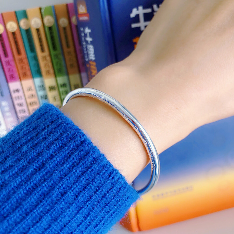 9999足銀手鐲女年輕款實心純銀手鐲子銀飾祥云親子款小眾生日禮物