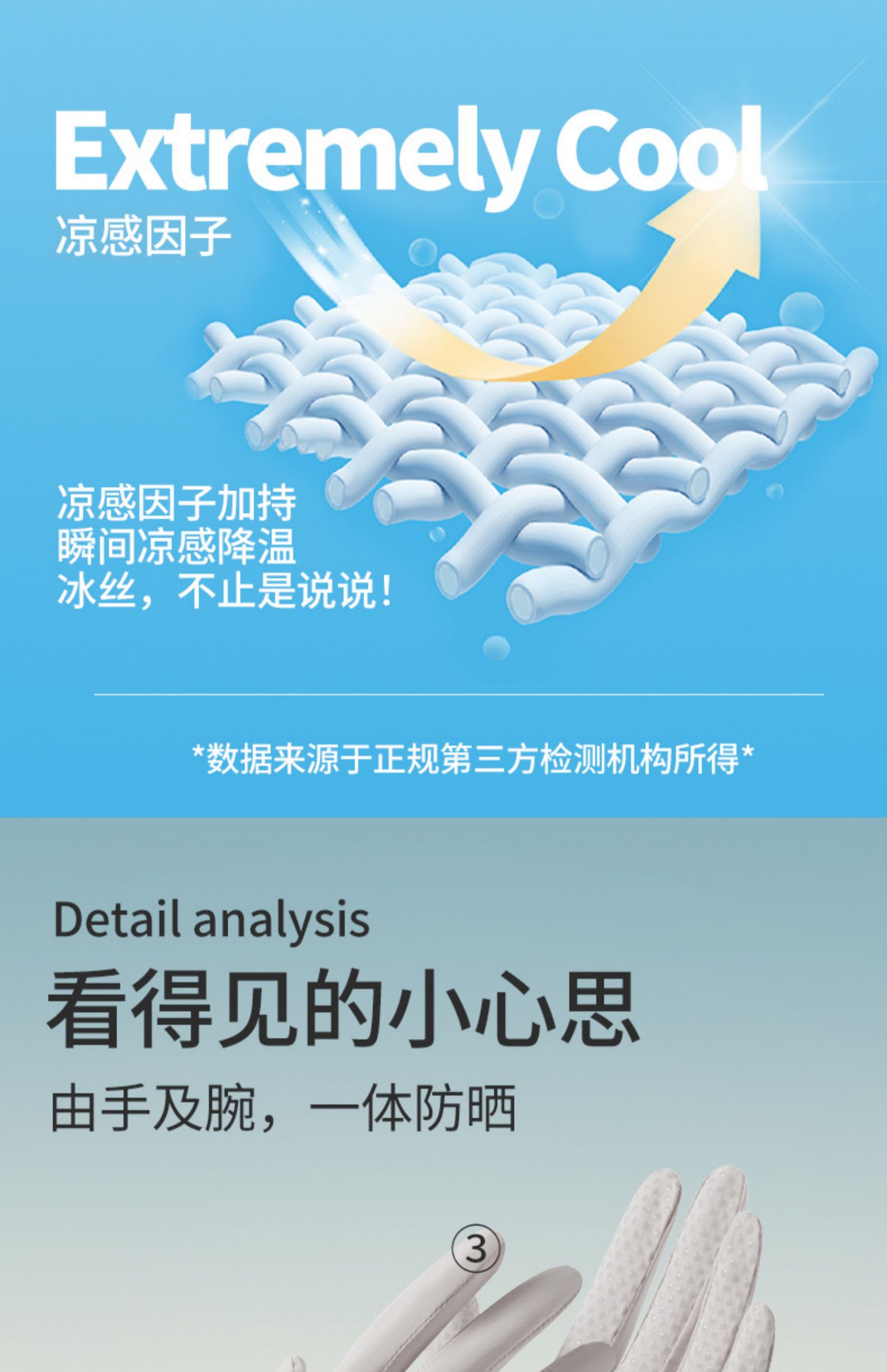 冰絲防曬長短手套男女冰感遮陽開車防紫外線夏季騎行透氣全指防滑
