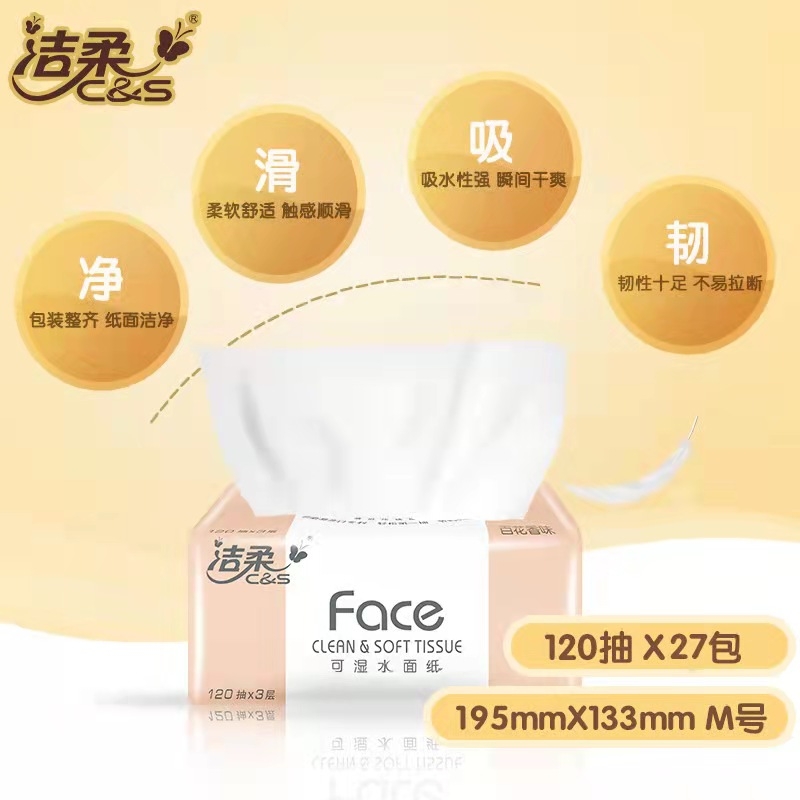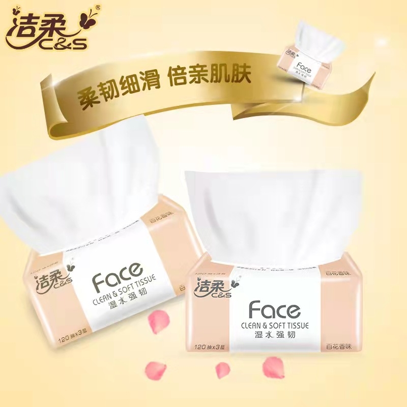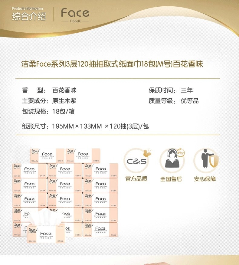 新疆西藏包郵潔柔紙巾家用百花香實惠裝整箱120抽餐巾紙face抽紙