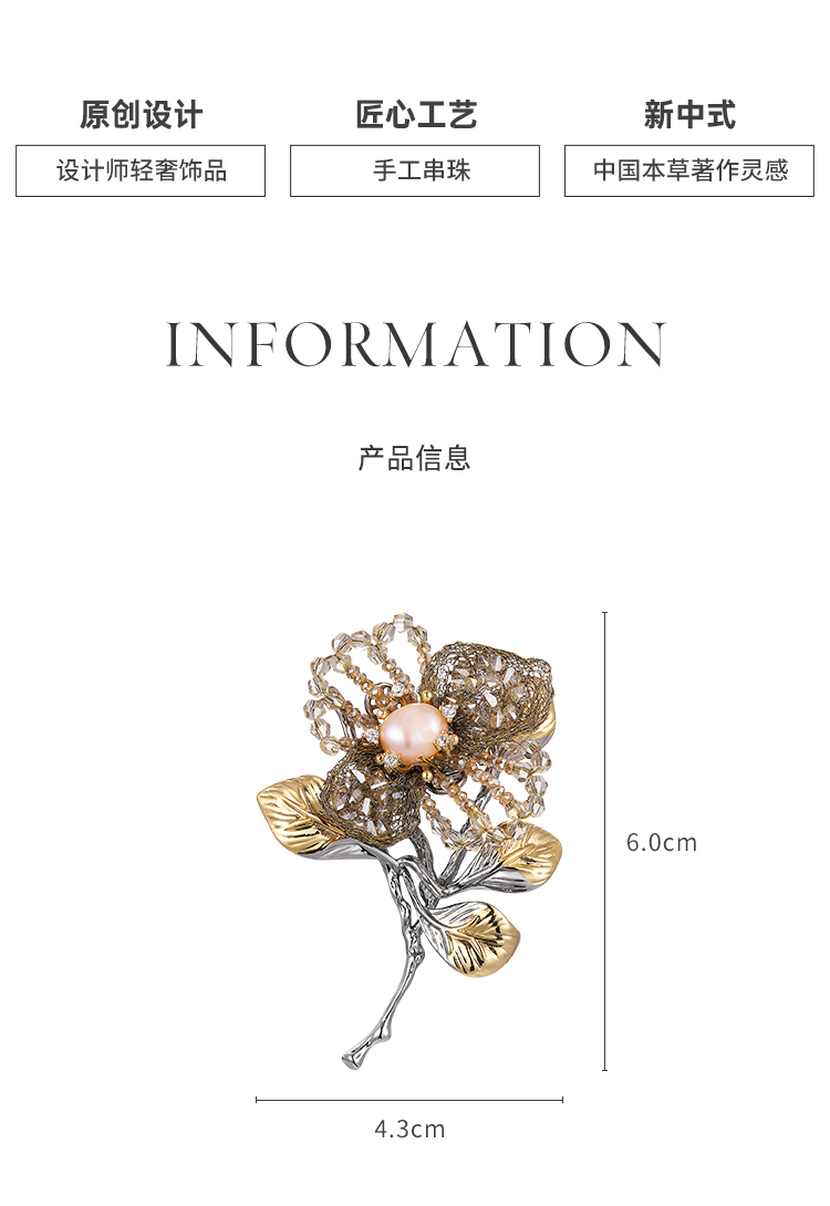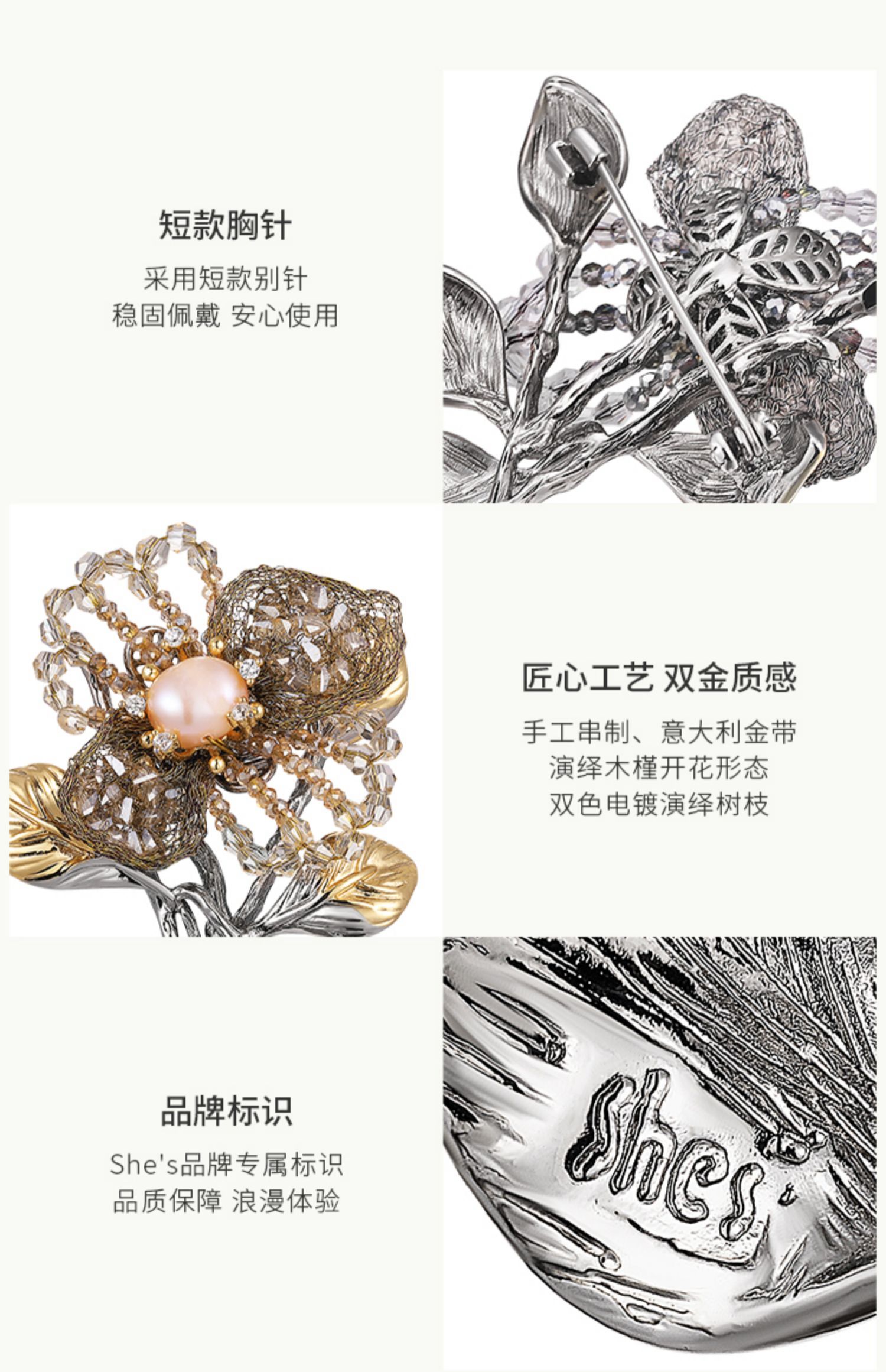 shes本草綱目原創手工串珠雙色花朵輕奢設計感小眾胸針母親節禮物