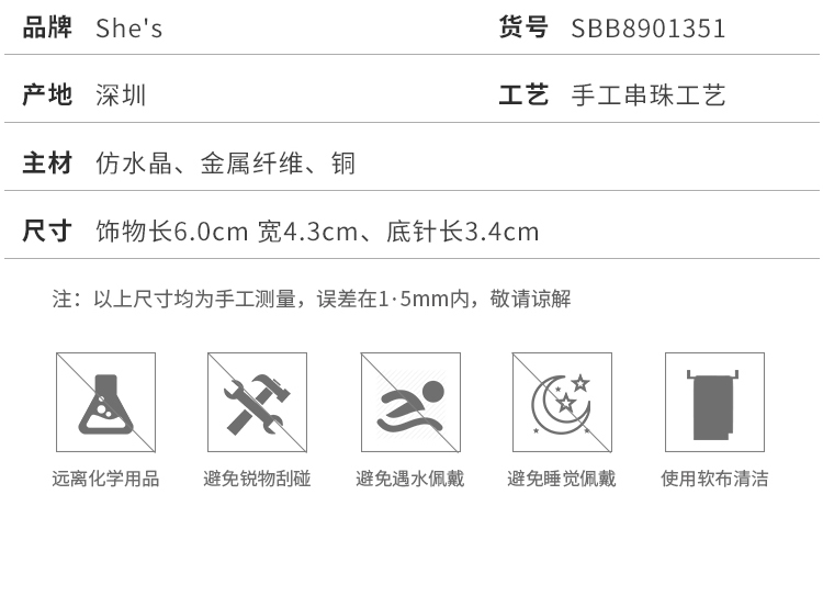 68¥ CZ0001 s5oydyljxXZ¥ https://m.tb.cn/h.5epDwa8 shes本草綱目原創手工串珠雙色花朵輕奢設計感小眾胸針母親節禮物 --------------------- shes本草綱目原創手工串珠雙色花朵輕奢設計感小眾胸針母親節禮物 --------------------- 雙金質感 手工串珠 雙色木槿 --------------------- 【原售價】559元 【優惠券】20元 【券后價】539元。