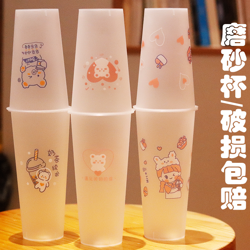 一次性磨砂奶茶杯果汁果茶注塑杯