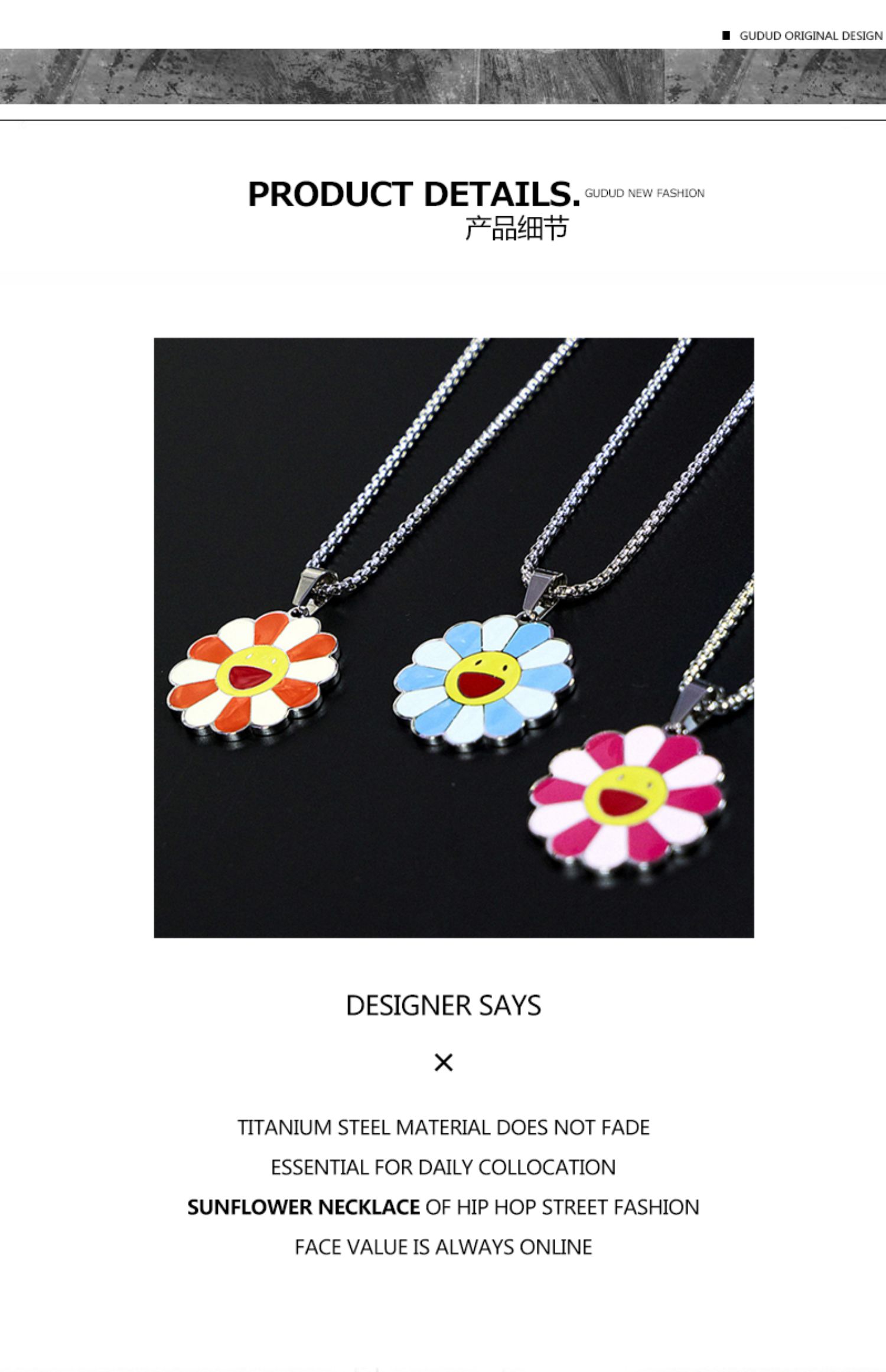 官方正品華晨宇同款七彩太陽花項鏈男潮村上隆涂畫吊墜秋冬毛衣鏈
