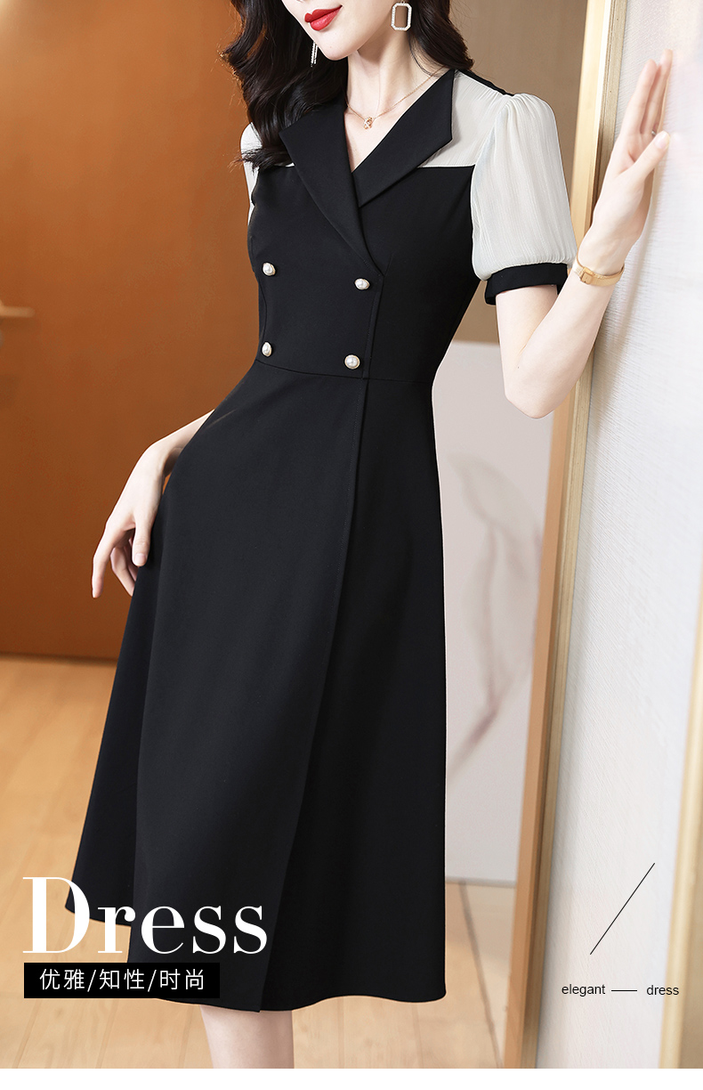 西裝連衣裙女短袖2023夏季新款氣質通勤黑色赫本風法式收腰小黑裙