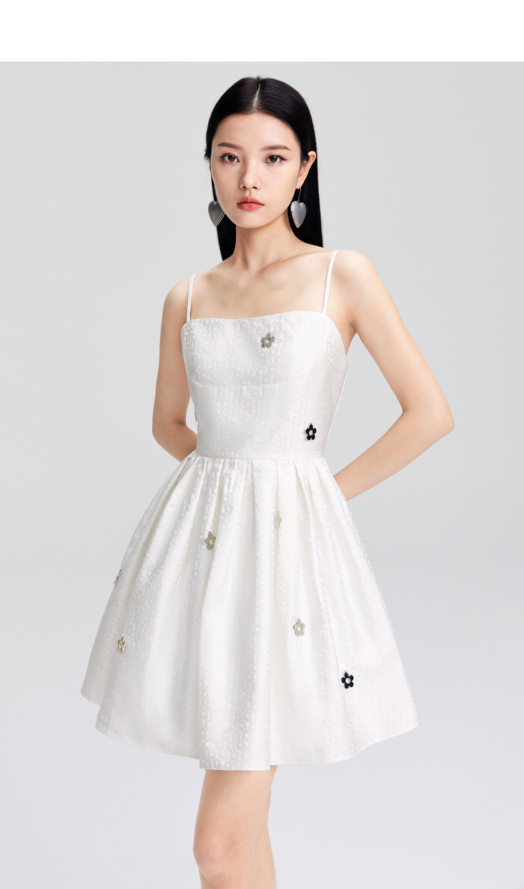 A21官方女裝品質吊帶連衣裙夏季花朵方領短裙小個子女生學院