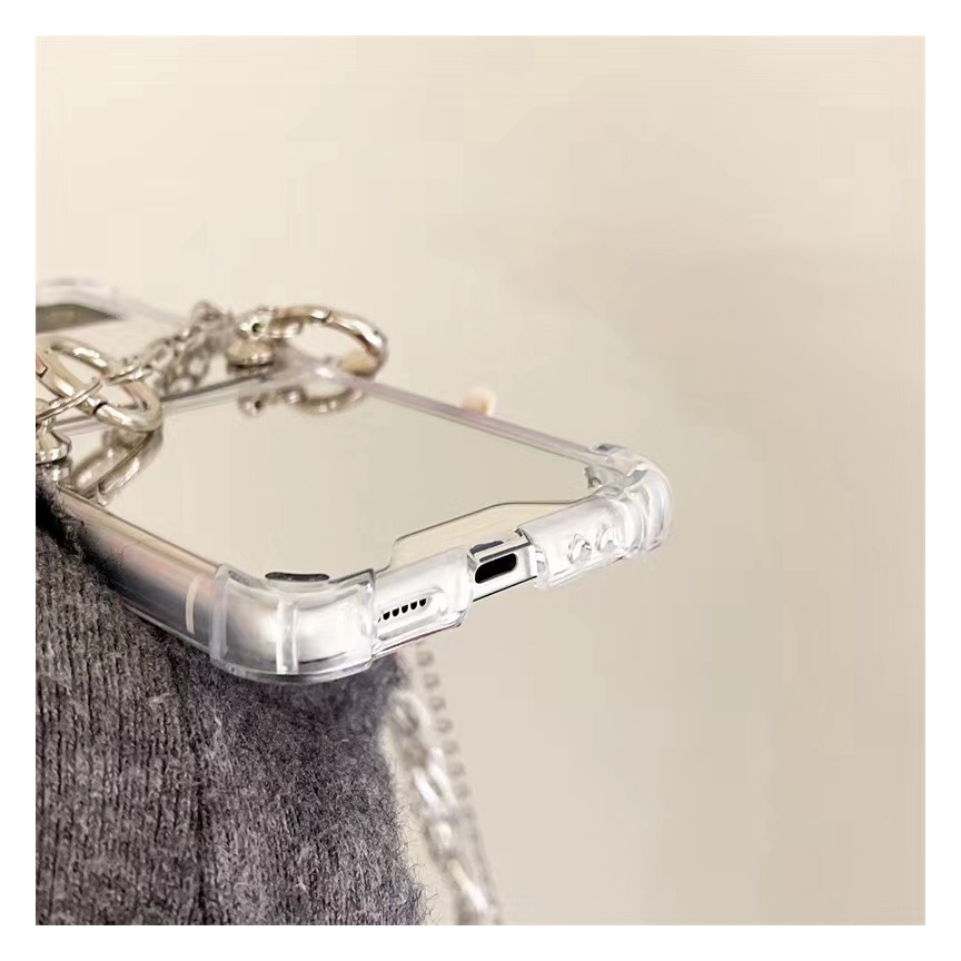 補妝鏡子適用三星zflip3手機殼zflip4折疊屏w23 filp斜跨背帶鏈條