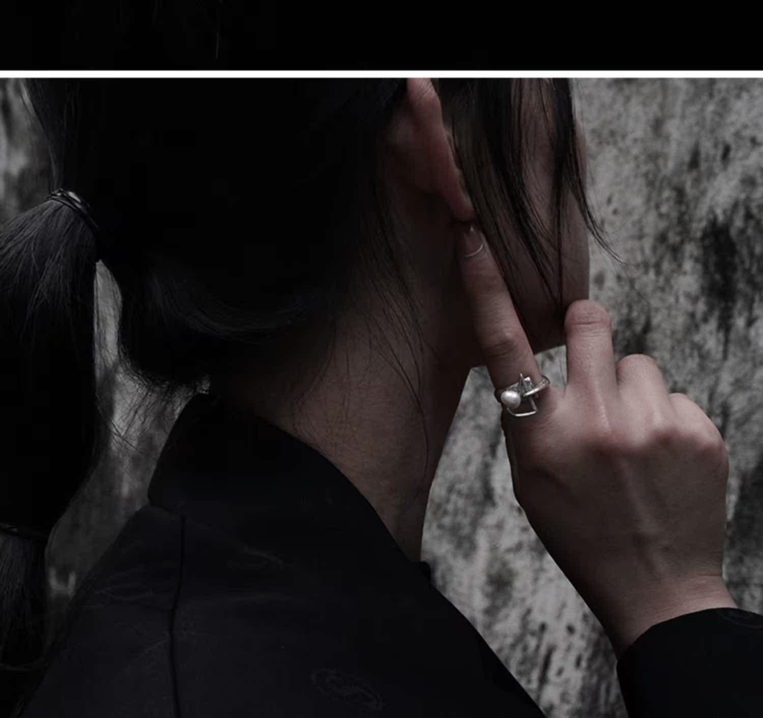 烏寺USTINIAN 原創設計師品牌手工環扣紋理開口戒指925純銀指環