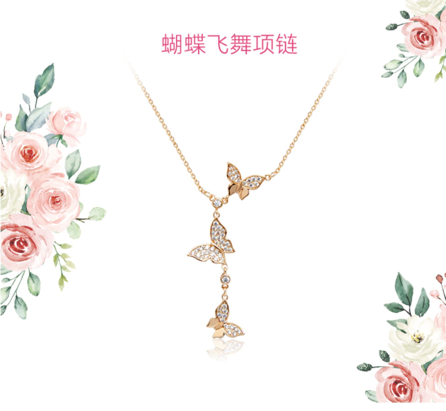 Chomel蝴蝶飛舞閃耀鋯石項鏈女春夏款清新風格設計感甜美項鏈3394