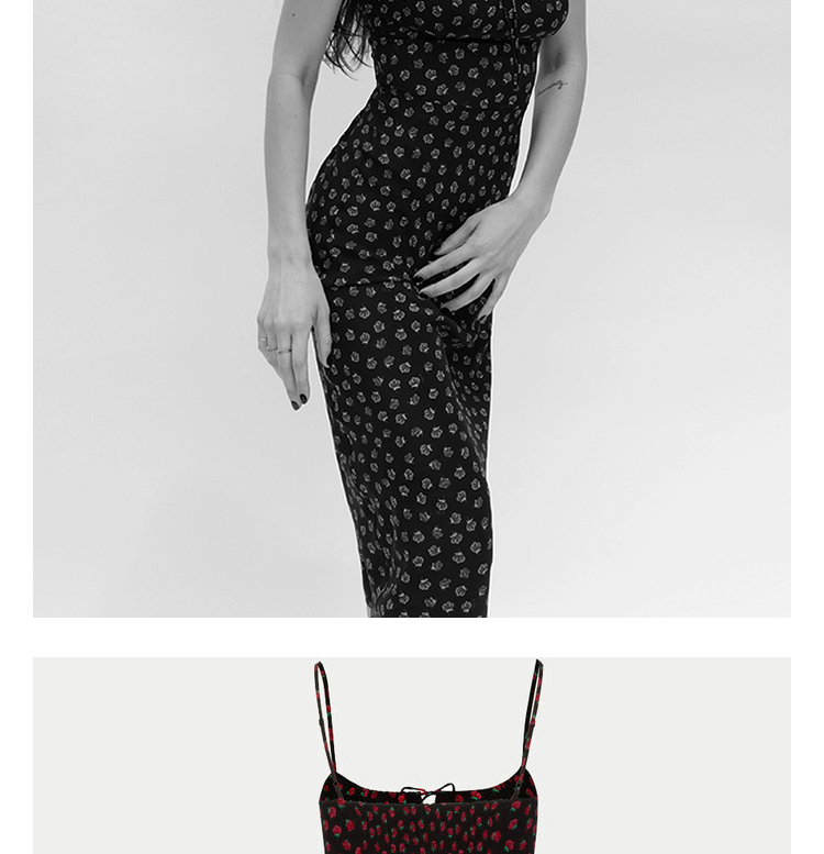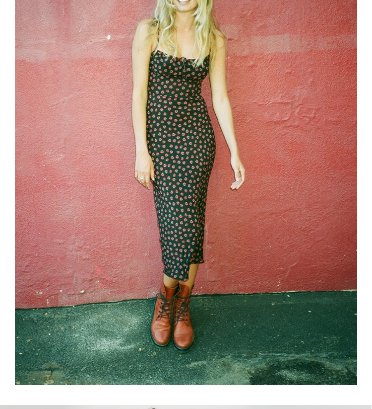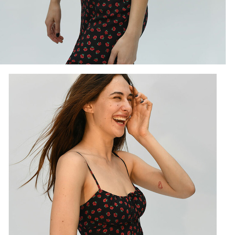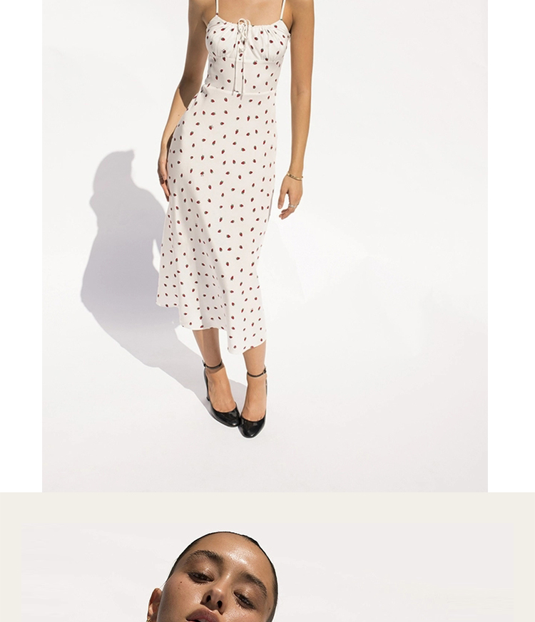 23年reformation新款草莓玫瑰法式清爽收腰吊帶連衣裙女夏季長裙