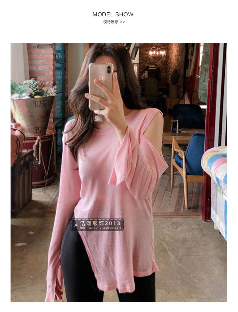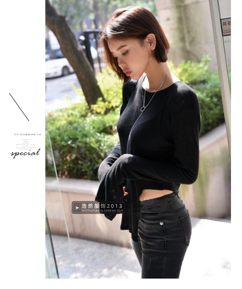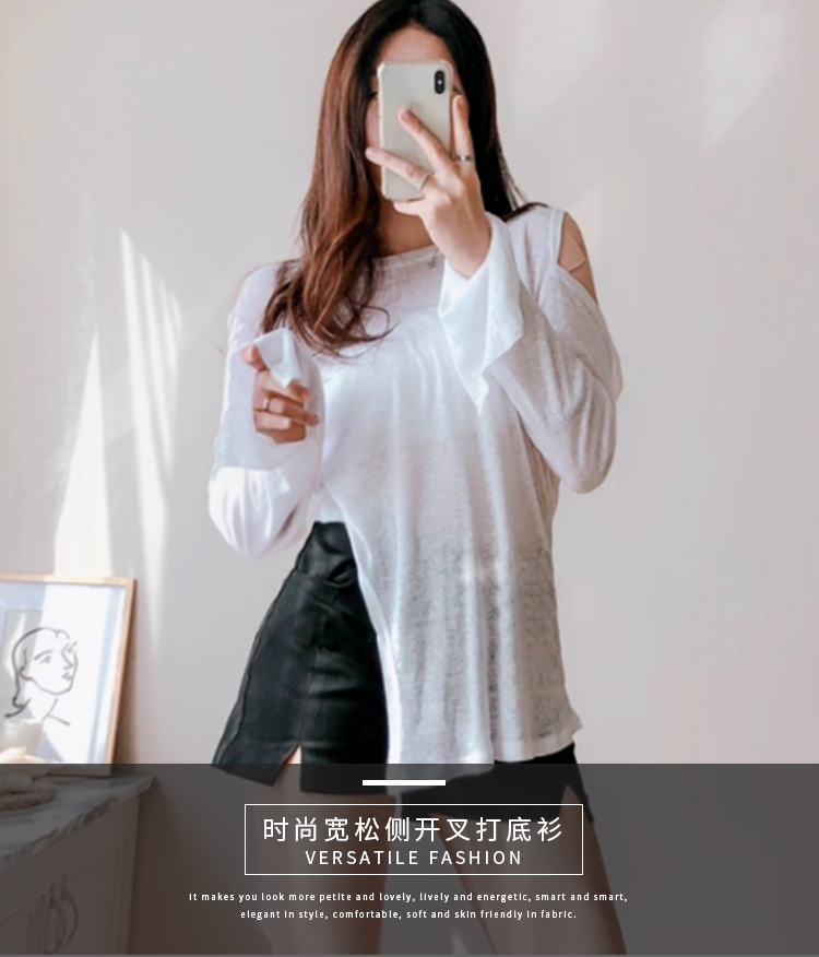 中長款長袖春秋遮屁股開叉歐貨t恤