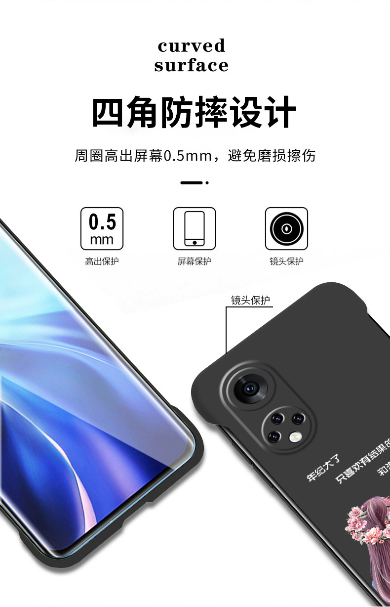 適用于華為榮耀50手機殼榮耀50pro超薄磨砂硬殼無邊框捧花女孩HONOR新品半包防摔女保護套50se網紅保護殼