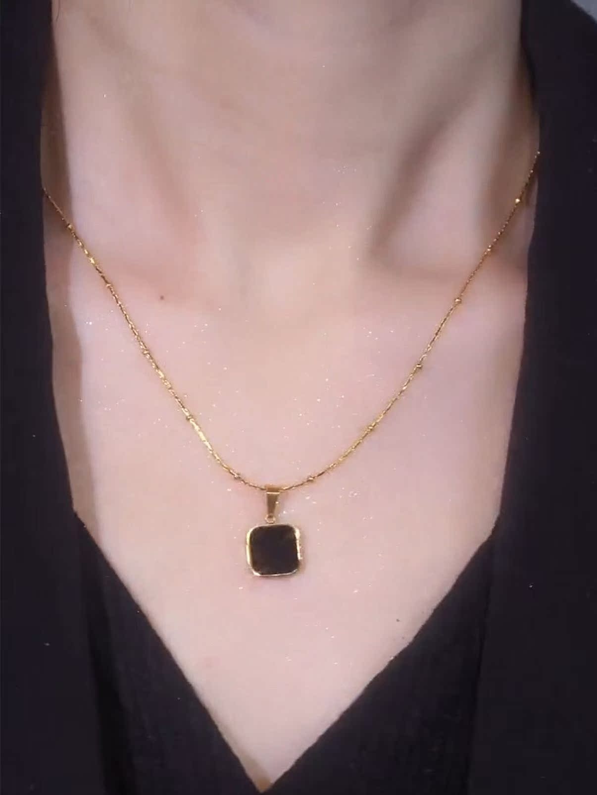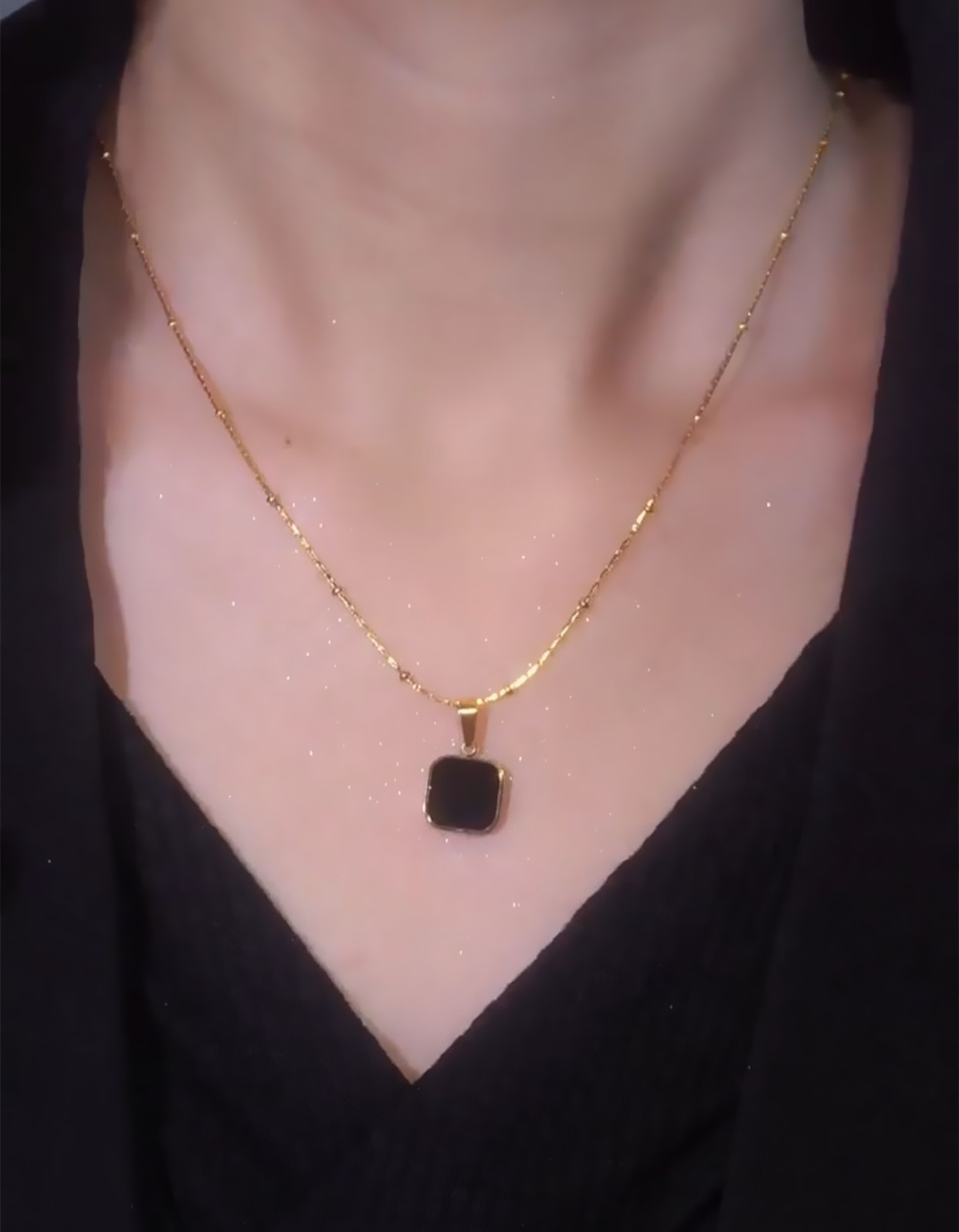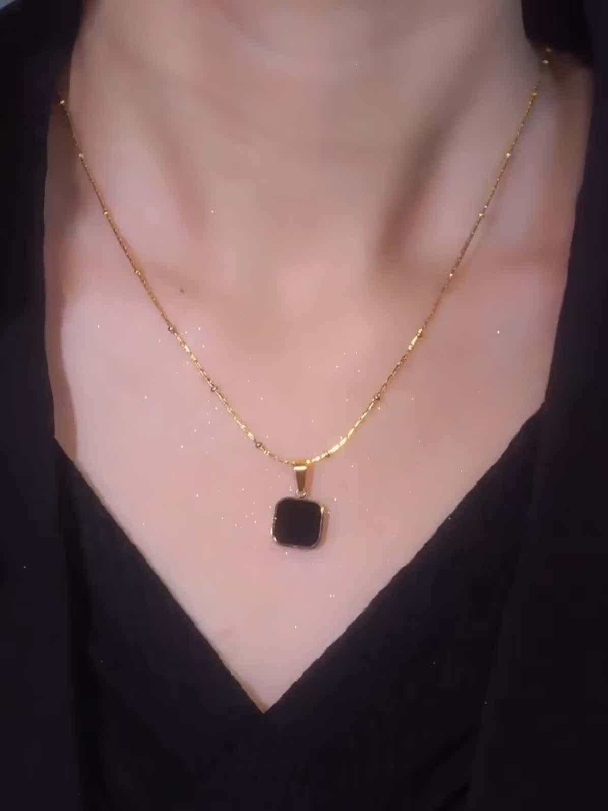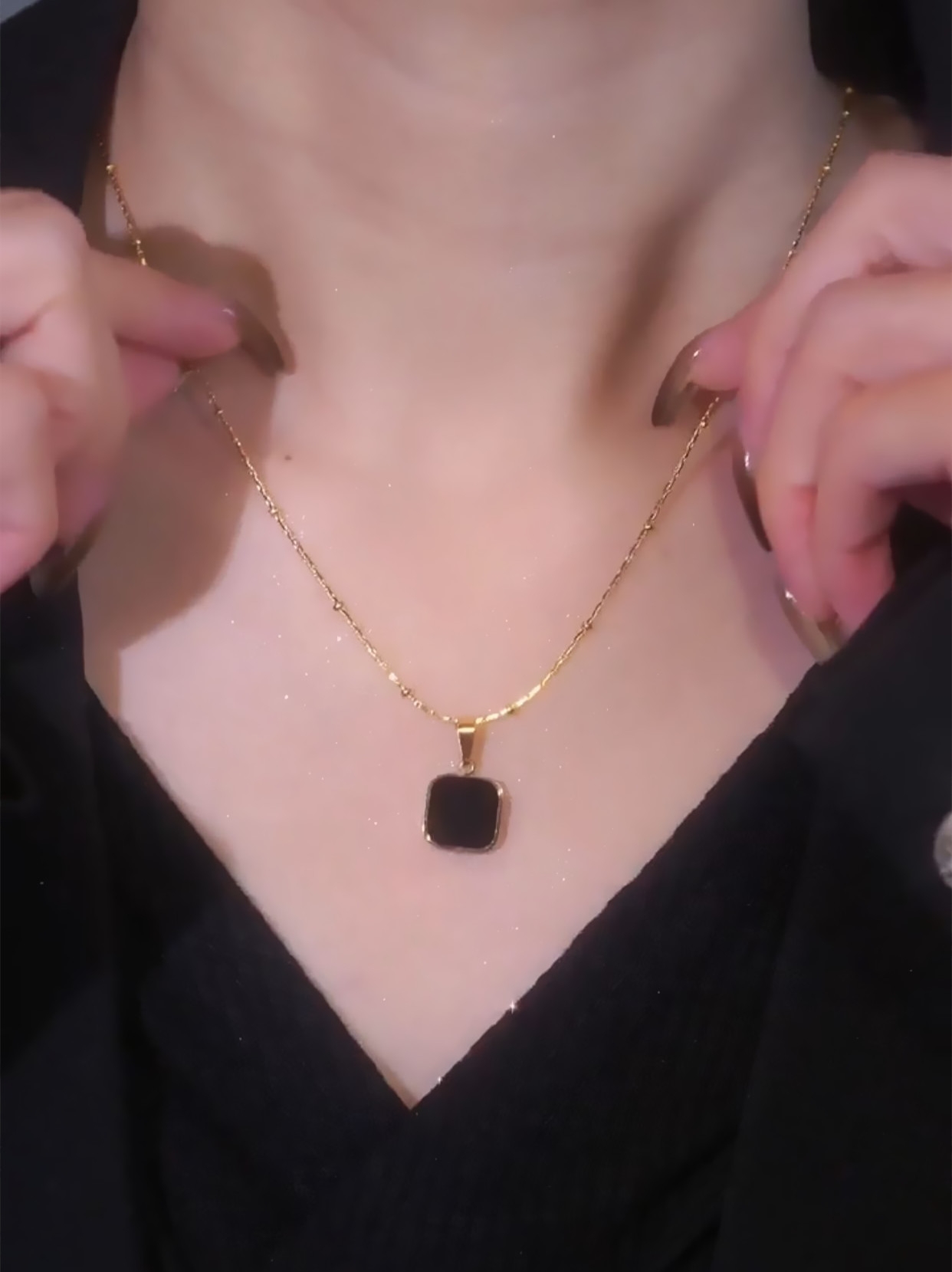 輕奢高級感黑色方塊項鏈女2022新款潮小眾設計感鈦鋼不掉色鎖骨鏈