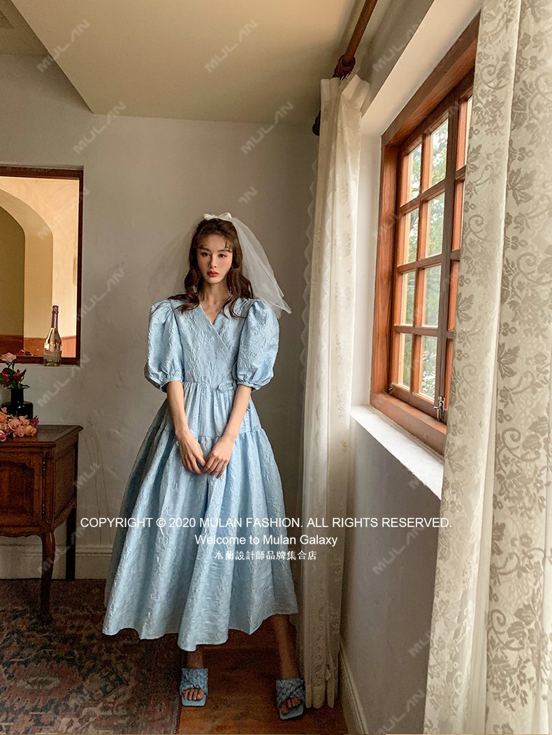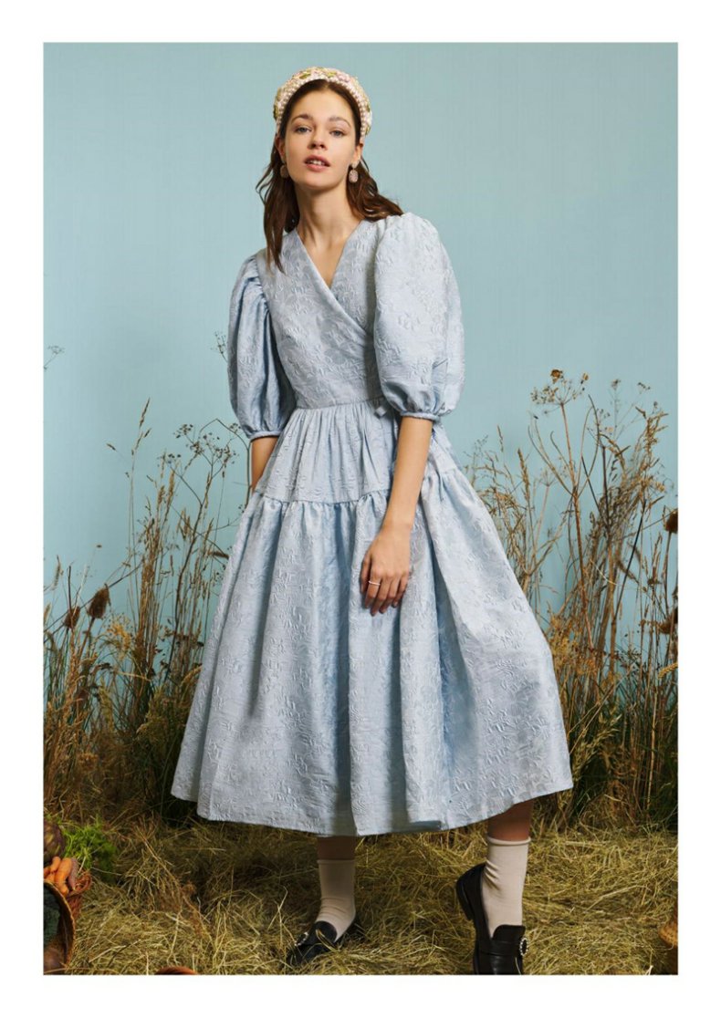 木蘭買手店Sister Jane 2R新款花朵壓紋泡泡袖蓬松公主連衣裙甜美