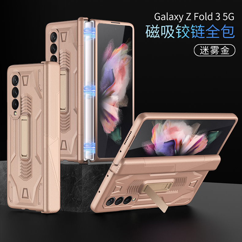 適用三星fold3手機殼zfold3折疊支架保護套Galaxyfold折疊屏韓國Galaxy w22全包防摔超薄SM-F9260真皮硅膠