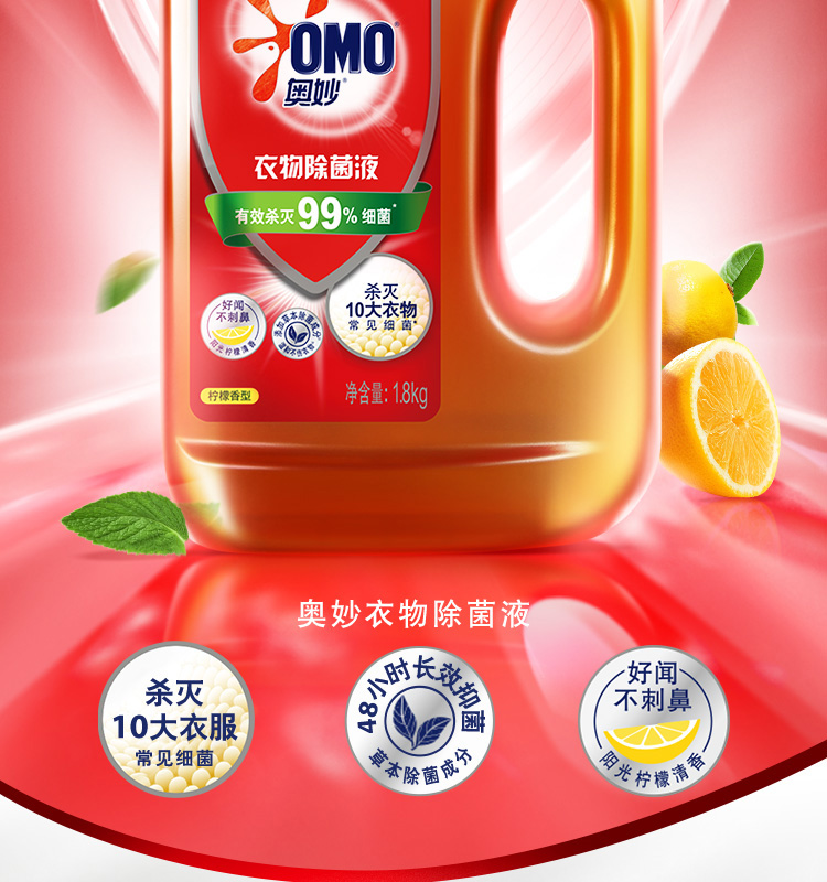 奧妙衣物除菌消毒液檸檬洗衣洗衣機