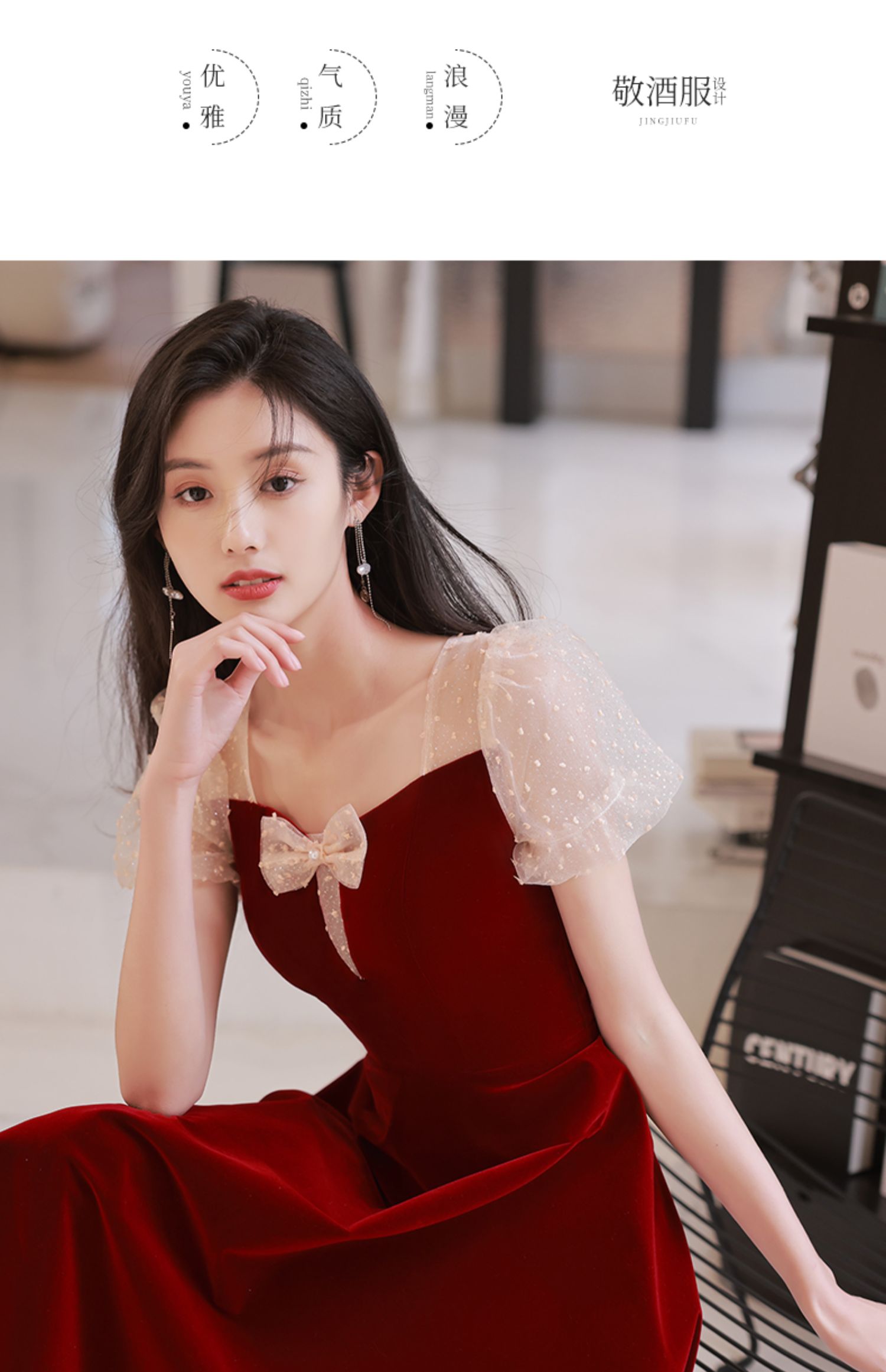 2022新款新娘酒紅色小個子晚禮服