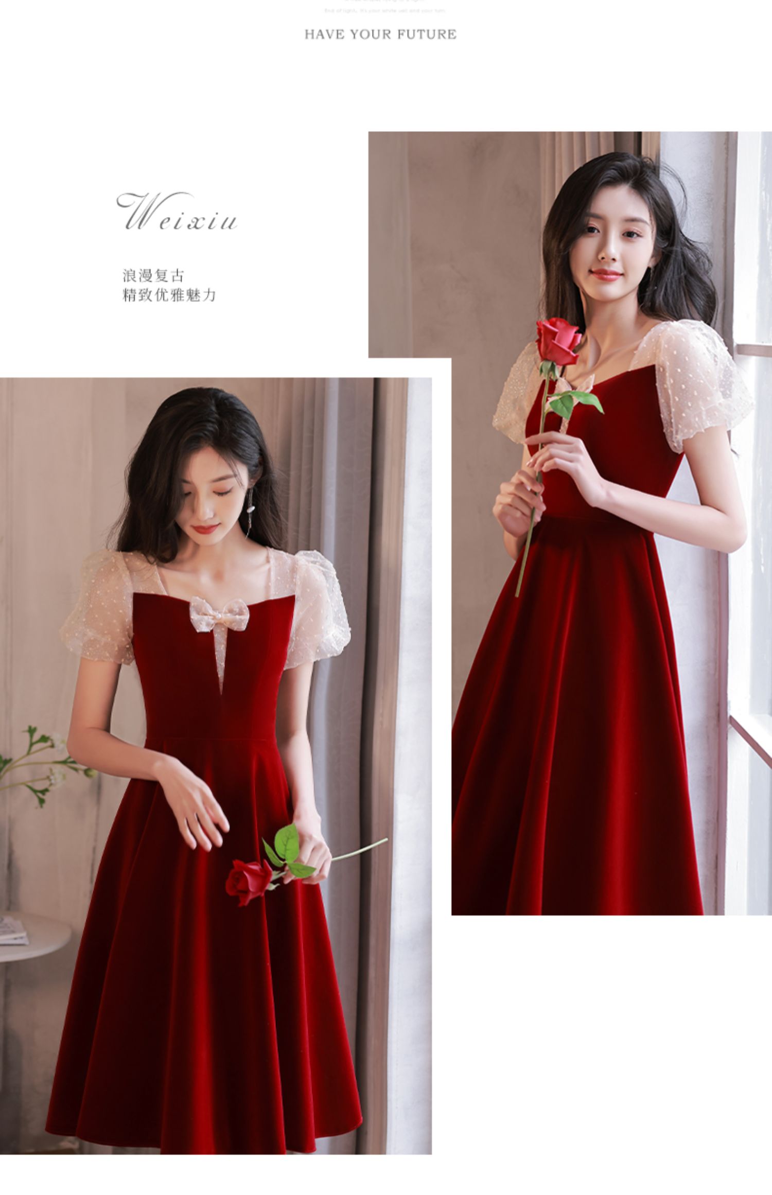 訂婚禮服平時可穿小個子紅色連衣裙