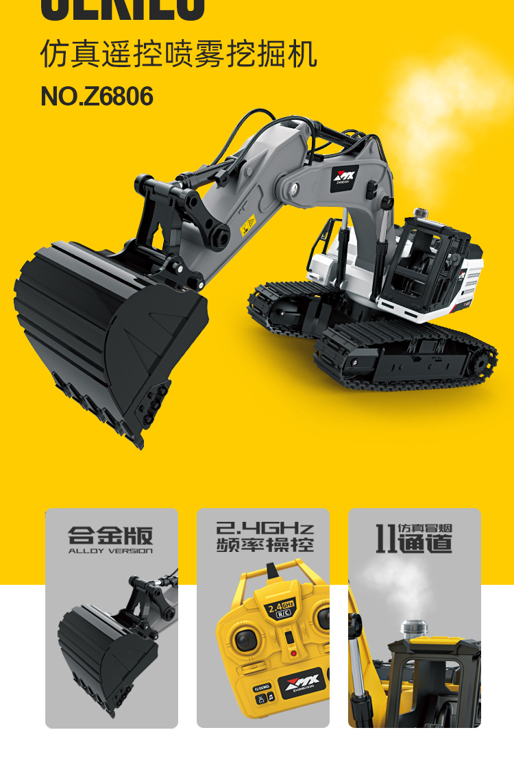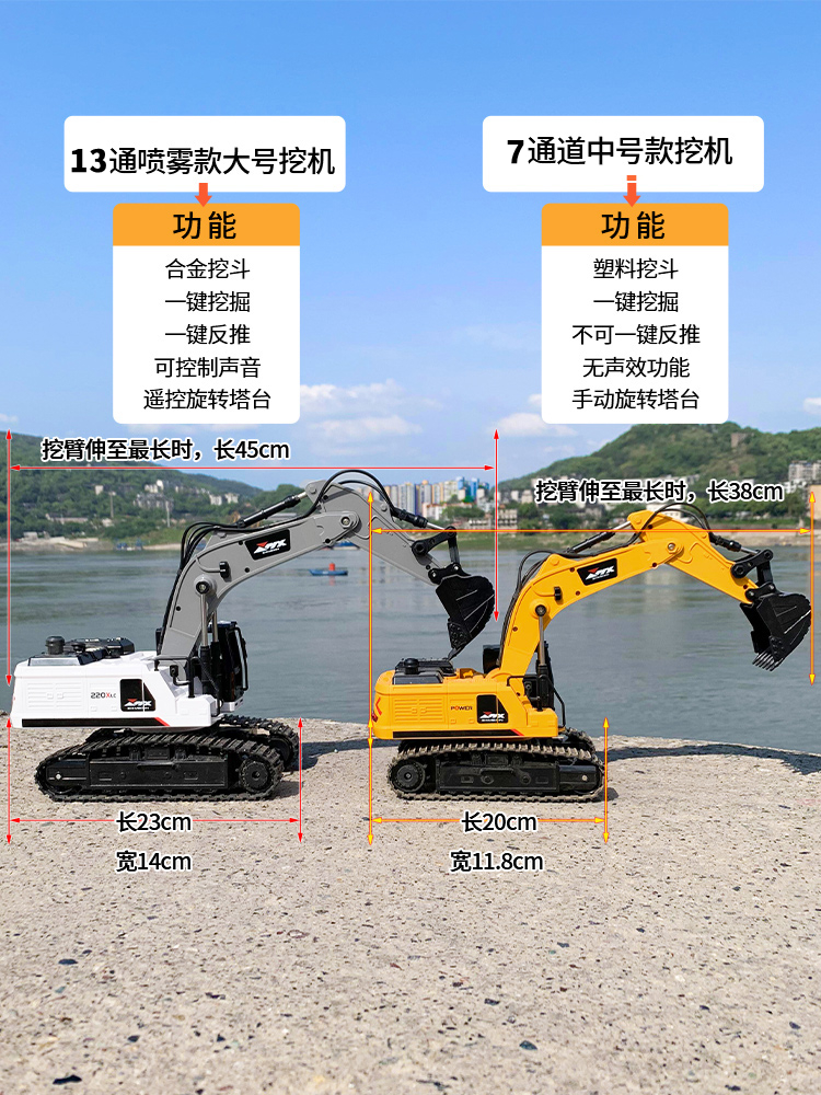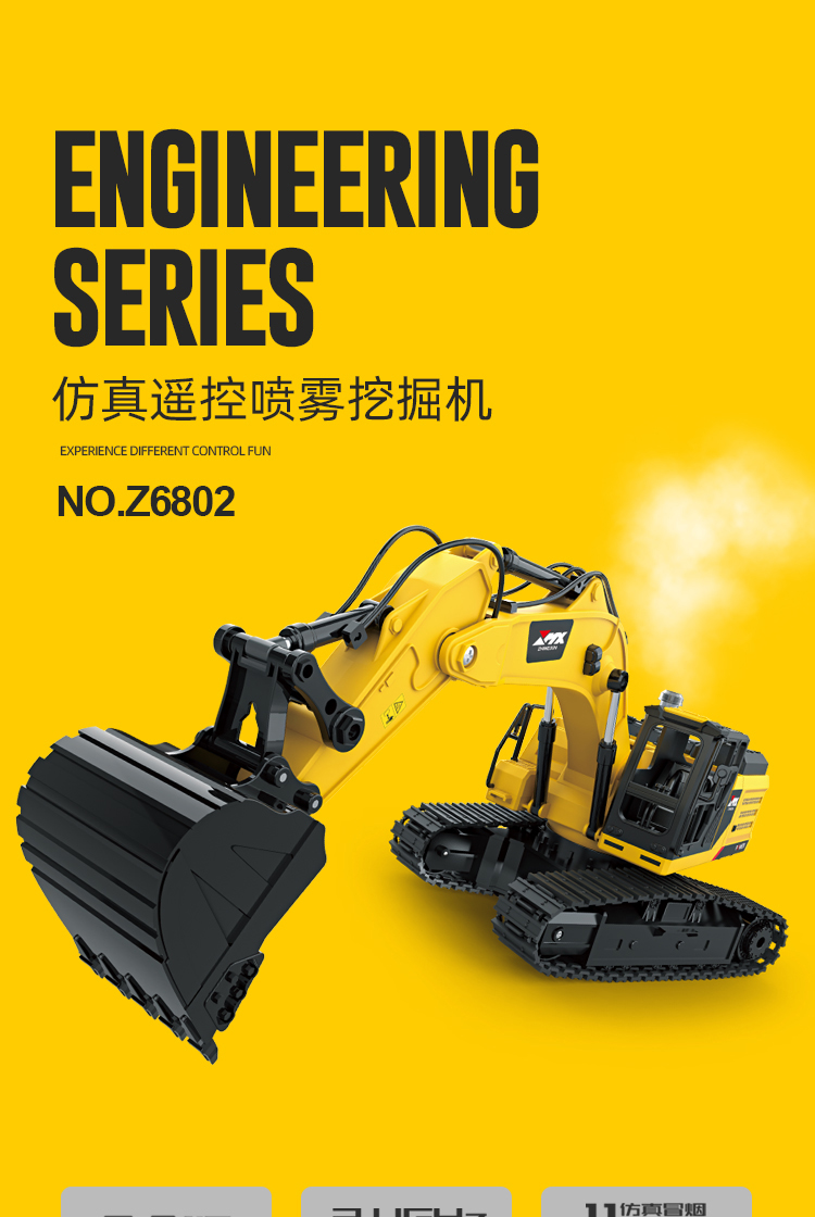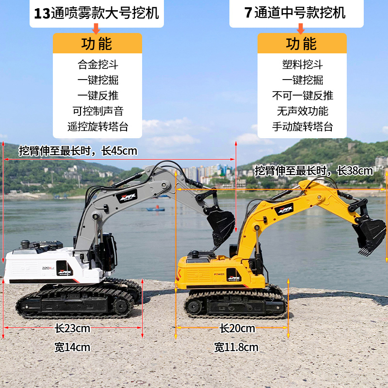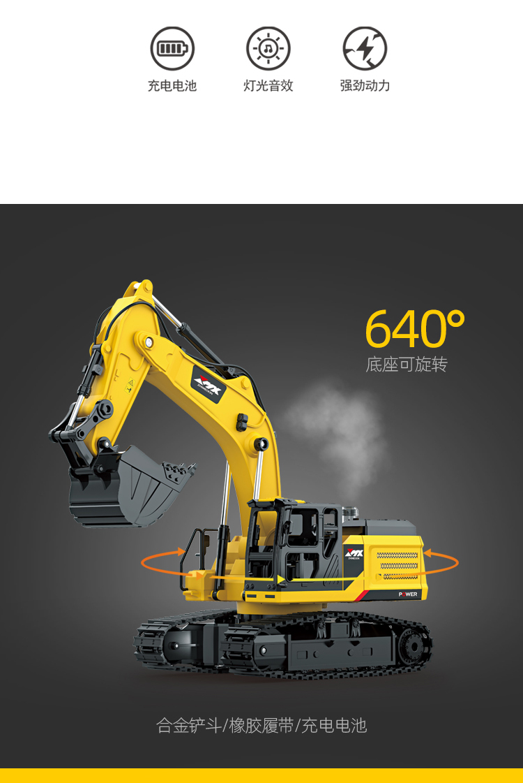 大號合金遙控挖掘機兒童充電動大型挖土機工程車玩具冒煙噴霧鉤機