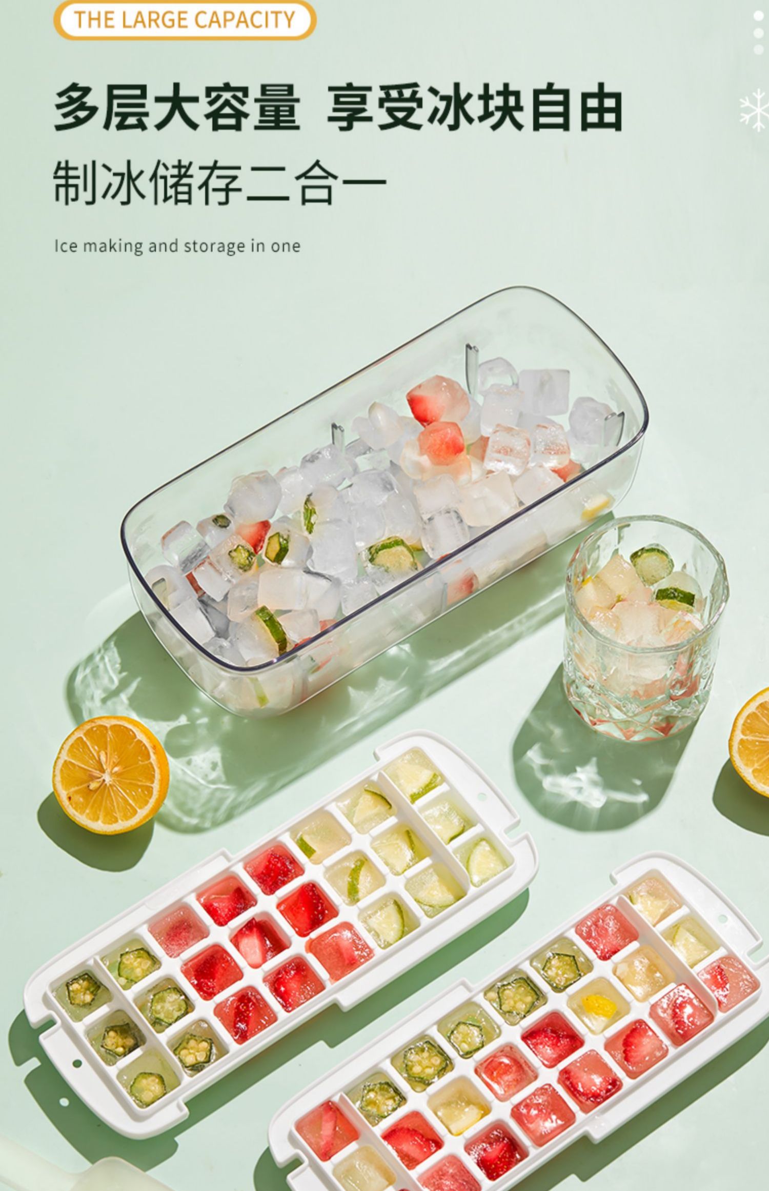 按壓冰塊模具冰格制冰盒帶蓋食品級凍冰塊模型自制冰箱凍冰塊神器