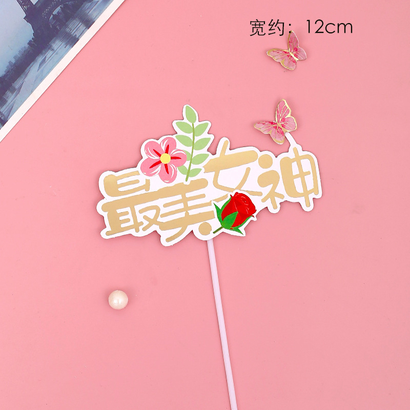 新款母親節婦女節節日快樂蛋糕裝飾插件蝴蝶我愛媽媽美麗女神插牌