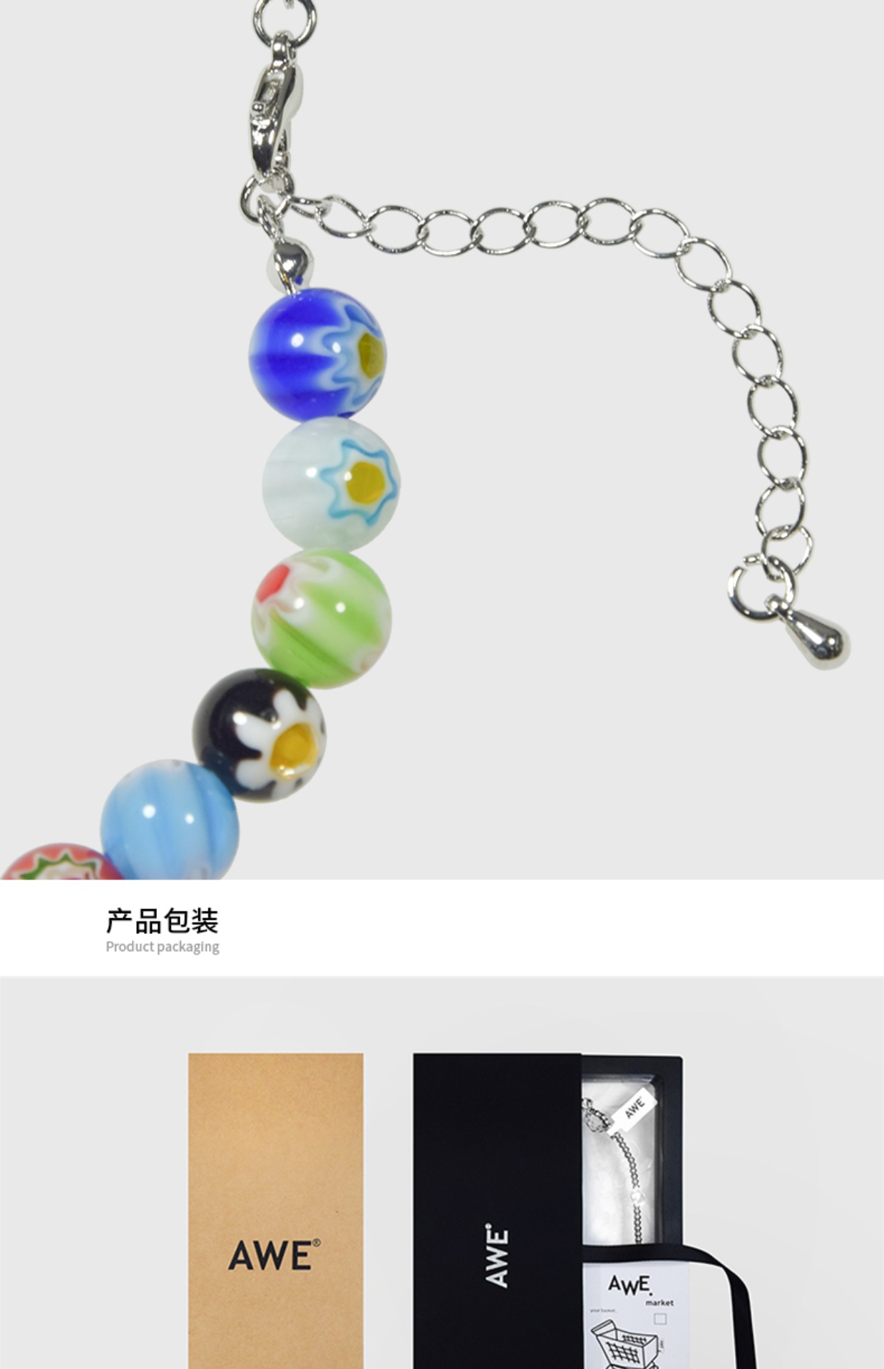 awe官方正品彩色串珠水晶鎖骨鏈